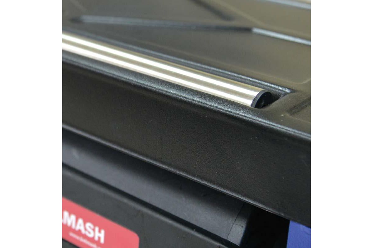 - Литой рабочий стол основания покрыт полированным стальным листом. Откидные удлинители: стол подачи и приема, снабжены вспомогательными роликами;