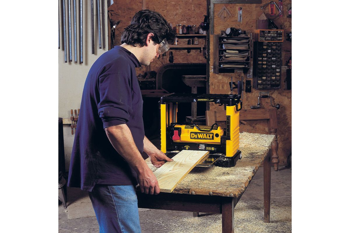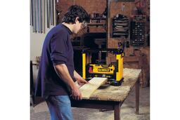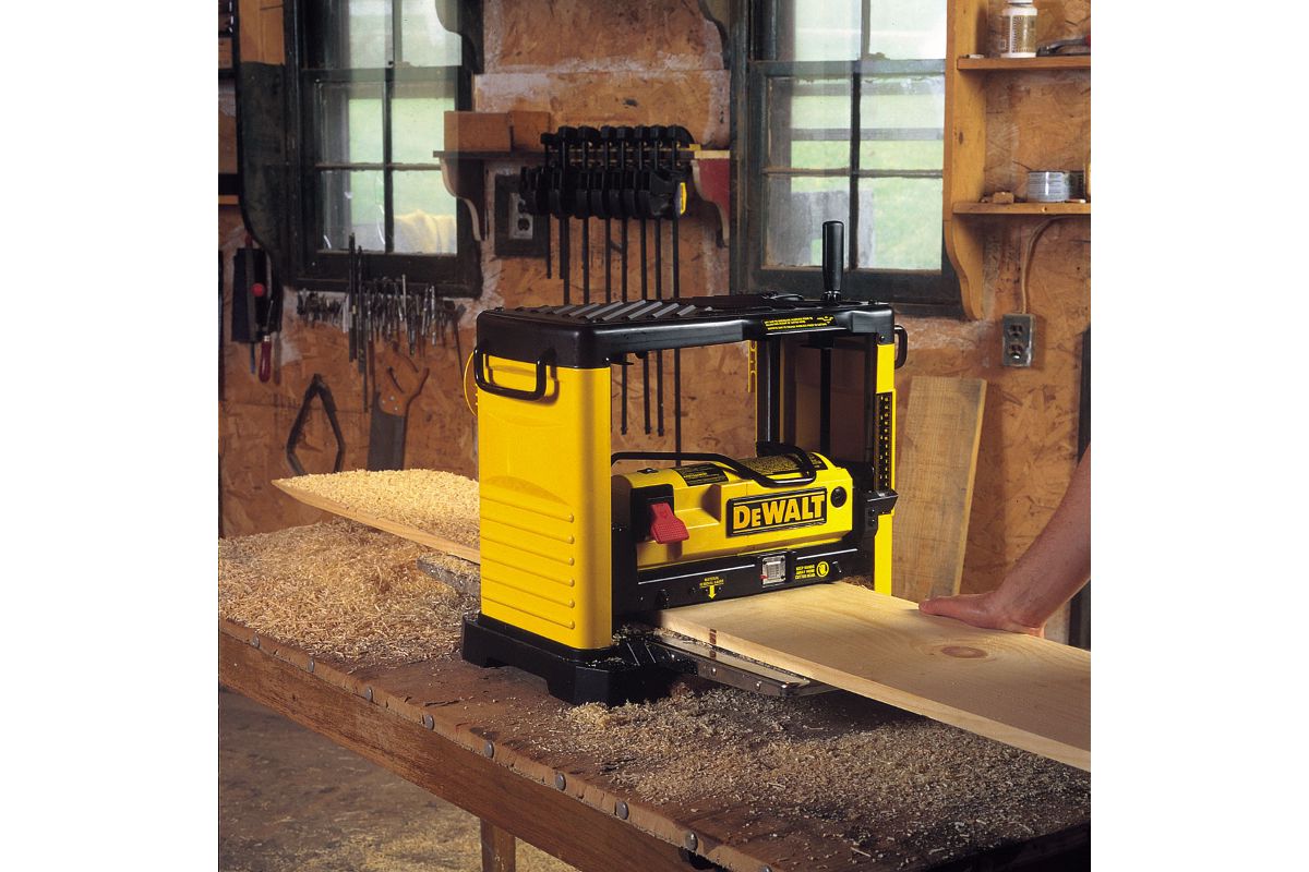 DEWALT DW733 – профессиональный рейсмусовый станок для строгания древесины. Будет полезен для строительства и работы в плотницких мастерских. Мощность агрегата – 1,8 кВт. Количество оборотов на холостом ходу – 10 000 об/мин.