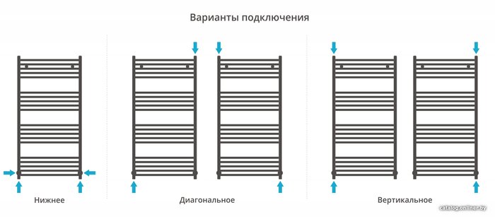 - Подключение боковое, нижнее, диагональное