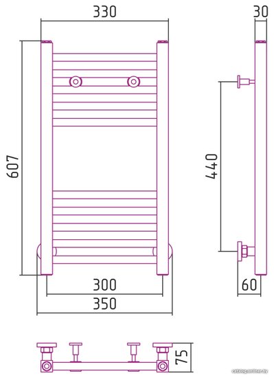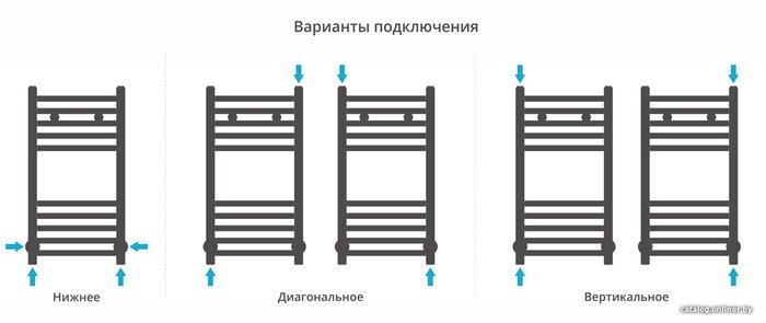 - Подключение боковое, нижнее, диагональное