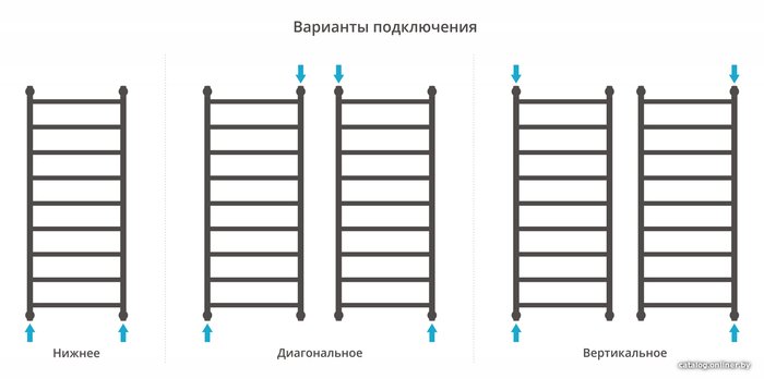 - Подключение боковое, нижнее, диагональное