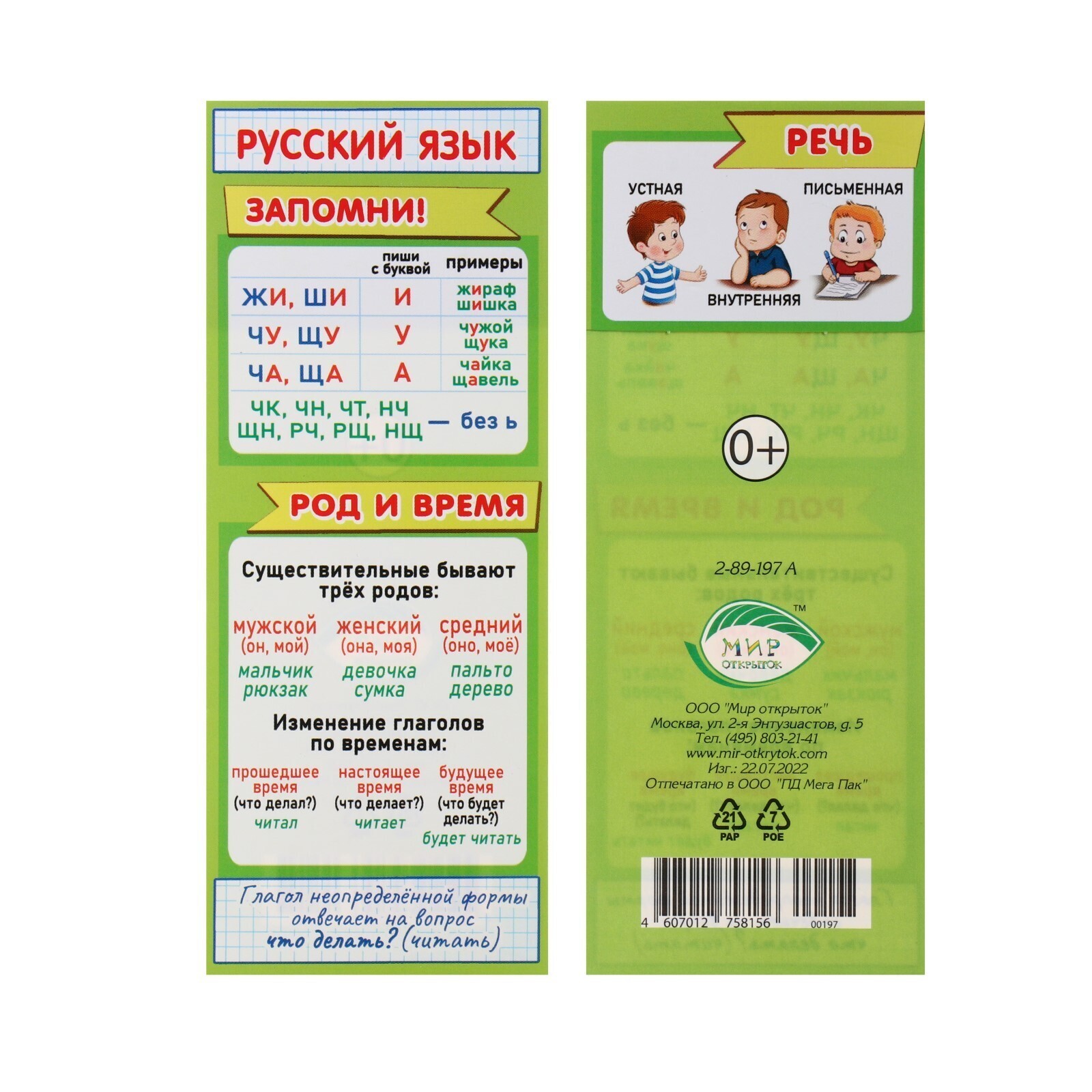 Закладка-памятка "Русский язык" 6х18,4 см