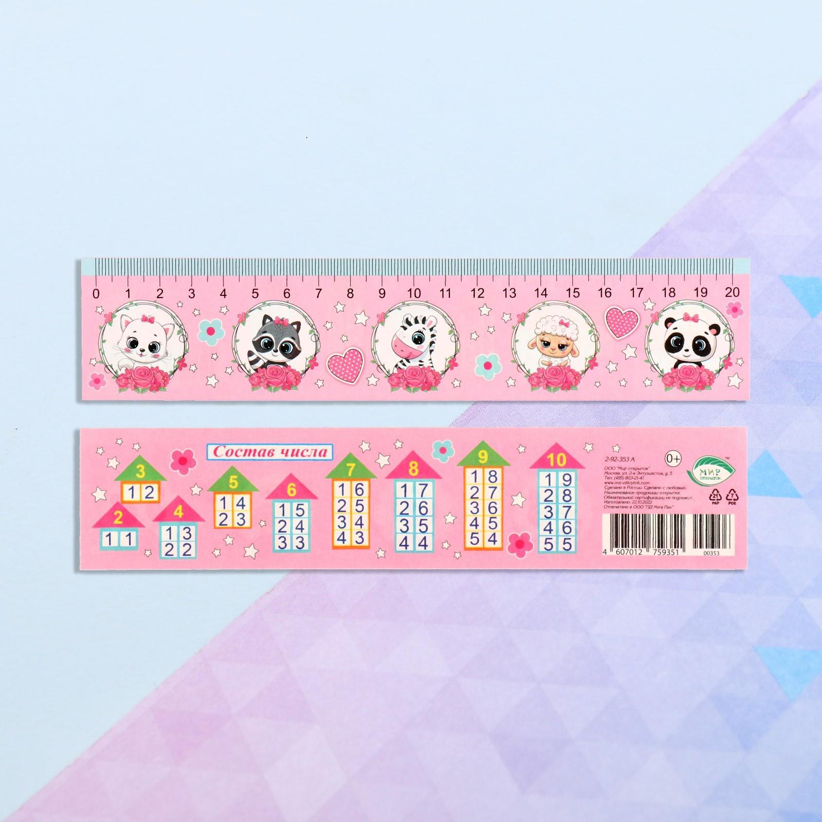 Закладка "Зверята" розовый фон, 21,6х5 см
