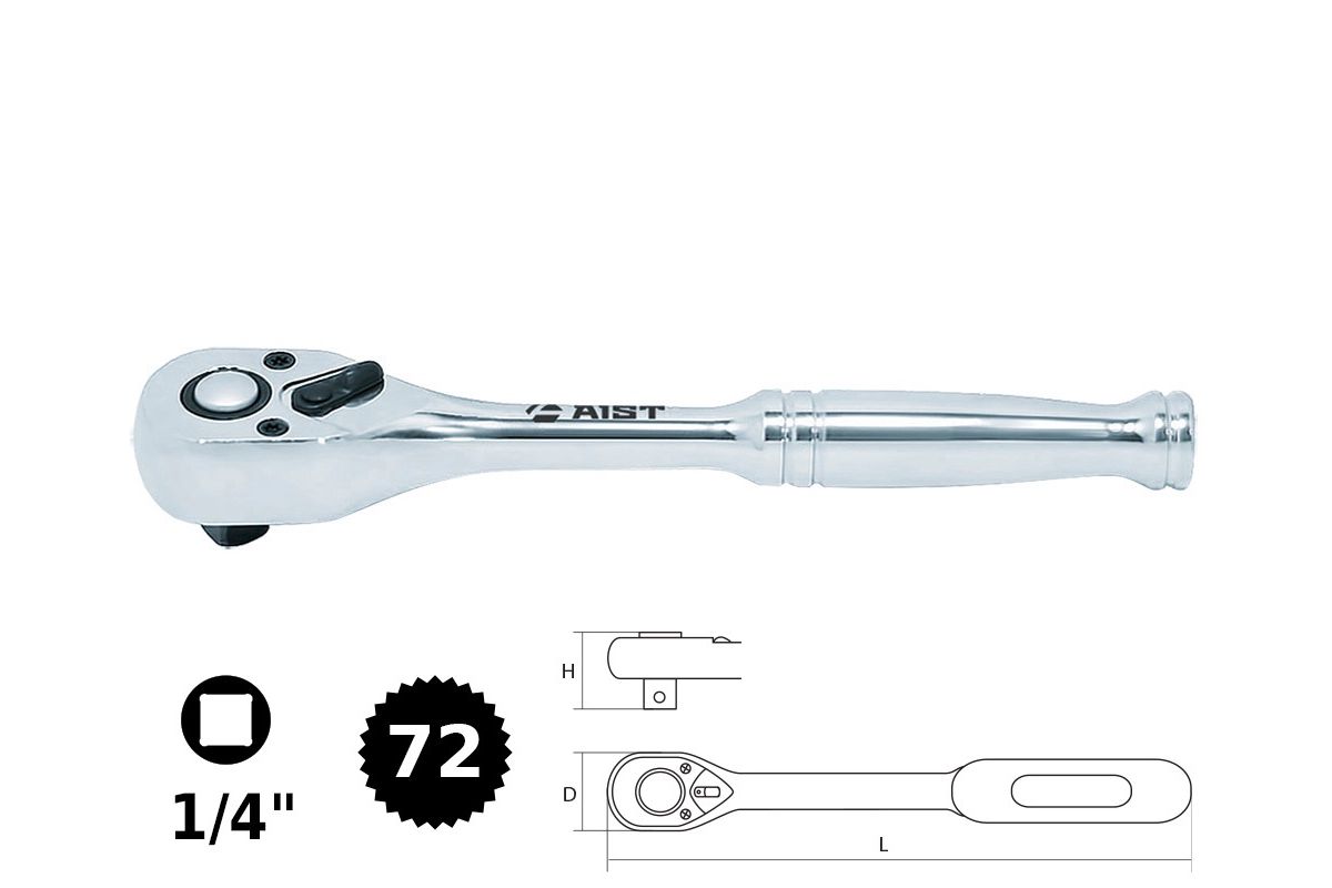 Трещотка AIST 1/4'', Н 146мм, 72 зуб. (22172-72)