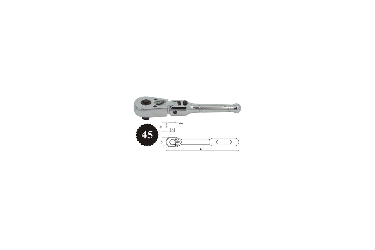 Трещотка AIST 1/4'', Н 122мм, 45 зуб. (22125-45)