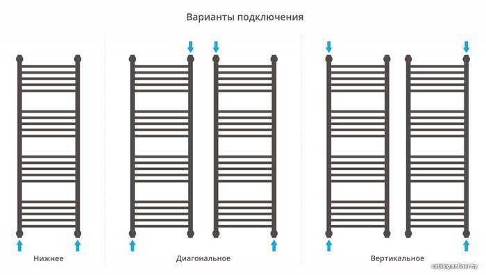- Подключение боковое, нижнее, диагональное