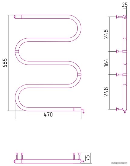 - Комплектация Полотенцесушитель - 1 шт.Кронштейн телескопический (рис. 2, 3 в зависимости от модели) - 1 к-тМетизы: Саморез+дюбель - 1 к-тКлюч ШГ №2,5 для кронштейна - 1 шт.Паспорт - 1 шт.Полотенцесушитель упакован в полиэтиленовый пакет и коробку из гофрокартона.