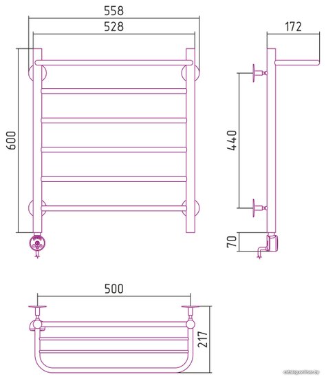 - Комплектация Полотенцесушитель - 1 шт.Кронштейн телескопический (рис. 1) - 1 к-тМетизы: Саморез+дюбель - 1 к-тКлюч ШГ №2,5 для кронштейна - 1 шт.Паспорт - 1 шт.Полотенцесушитель упакован в полиэтиленовый пакет и коробку из гофрокартона.
