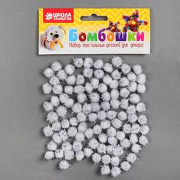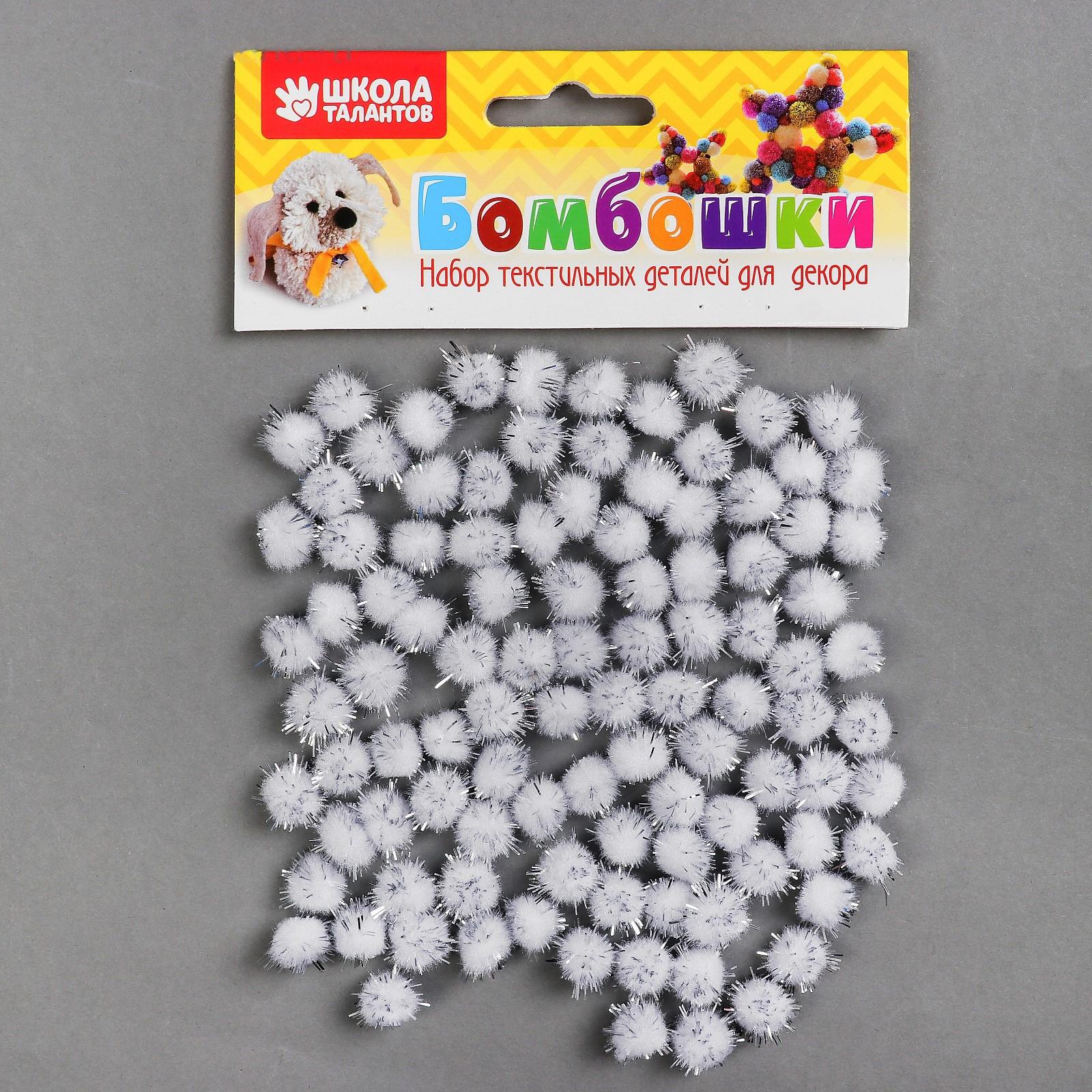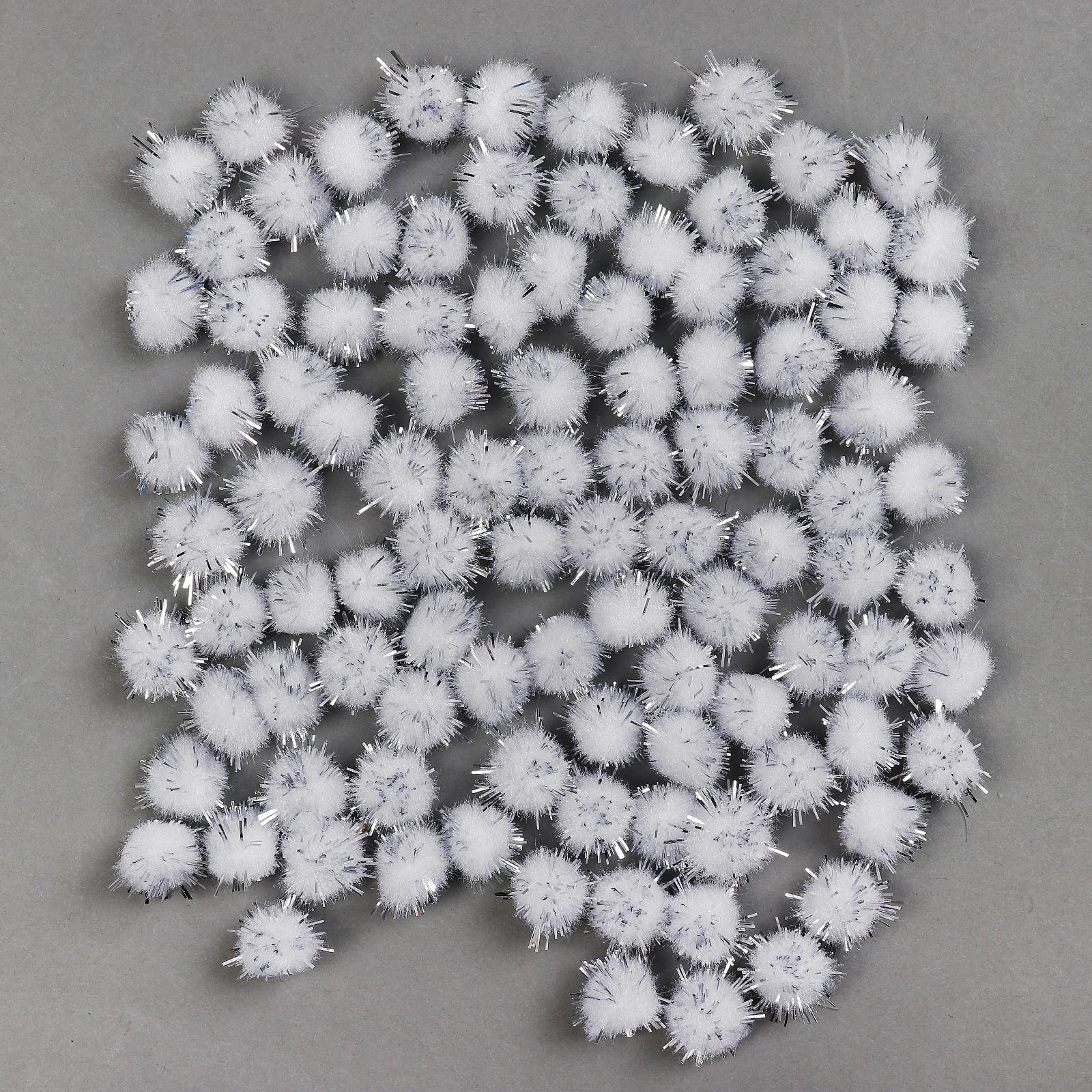 Набор деталей для декора "Бомбошки с блеском" набор 100 шт., размер 1 шт: 1 см, цвет бело-серебристый