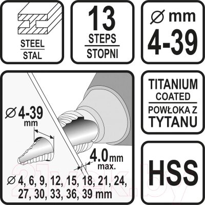 • Диаметр рабочий (мм) 18, 21, 4, 6, 15, 9, 24, 12, 33, 36, 30, 27, 39