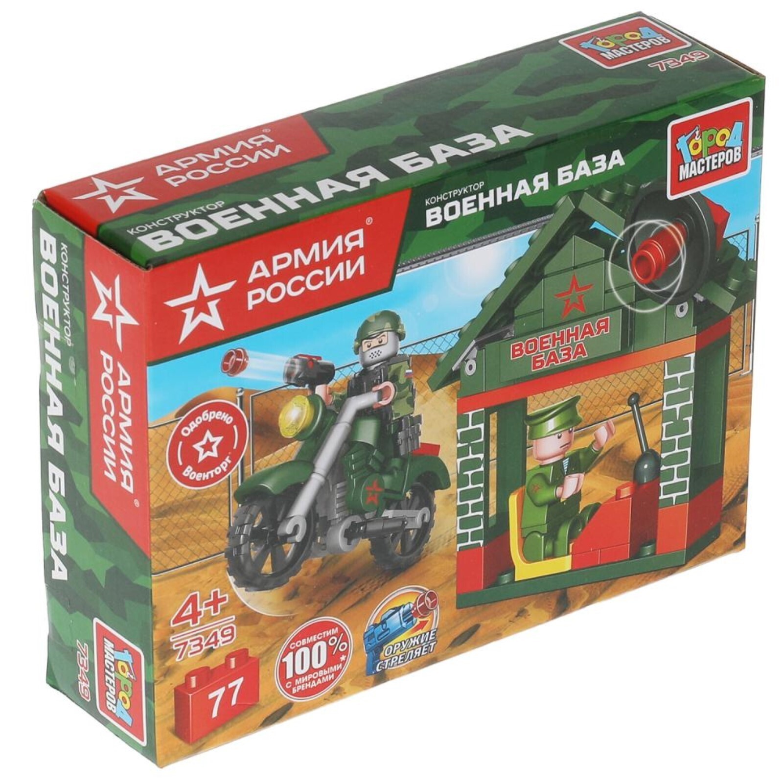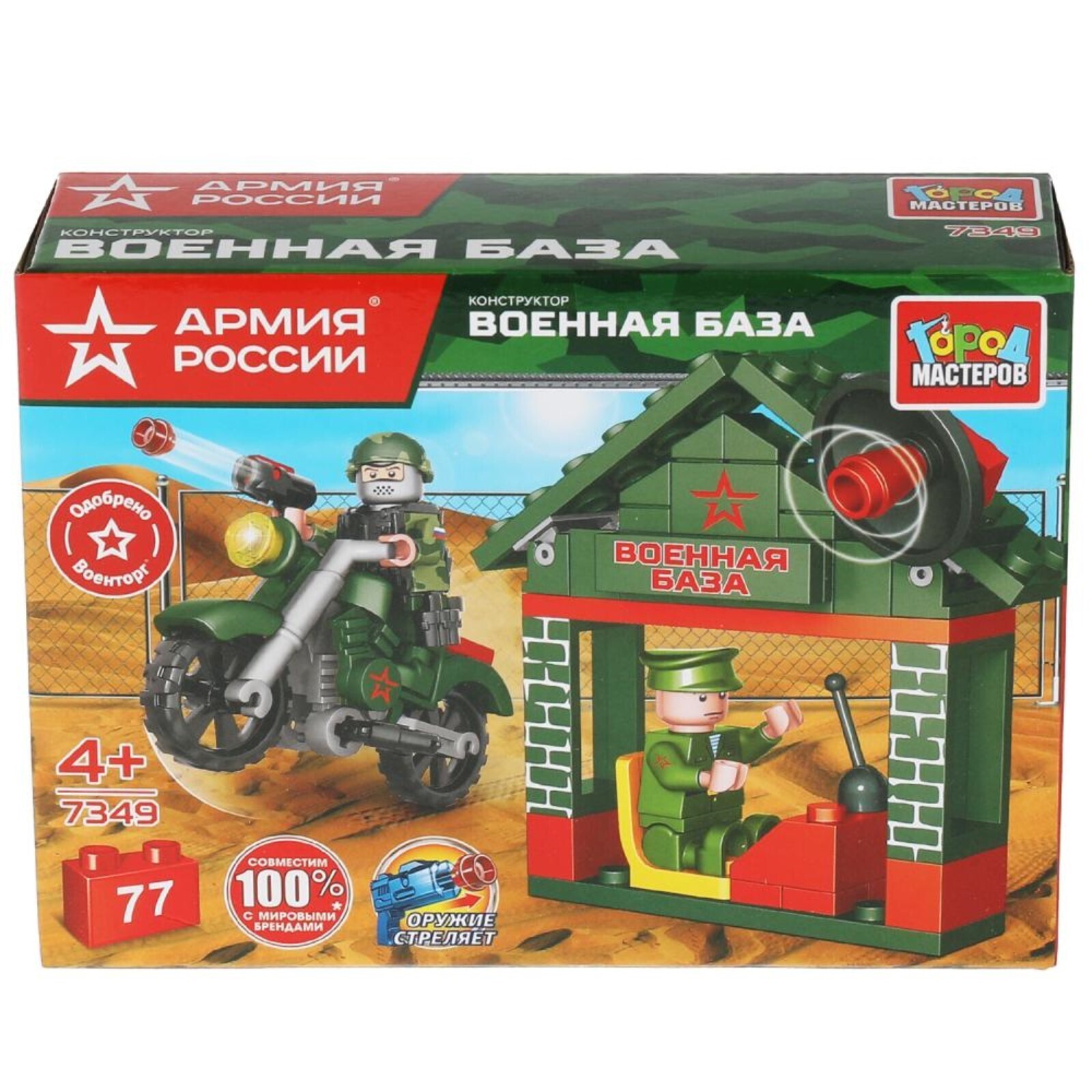 Конструктор «Военная база с мотоциклистом», 77 деталей