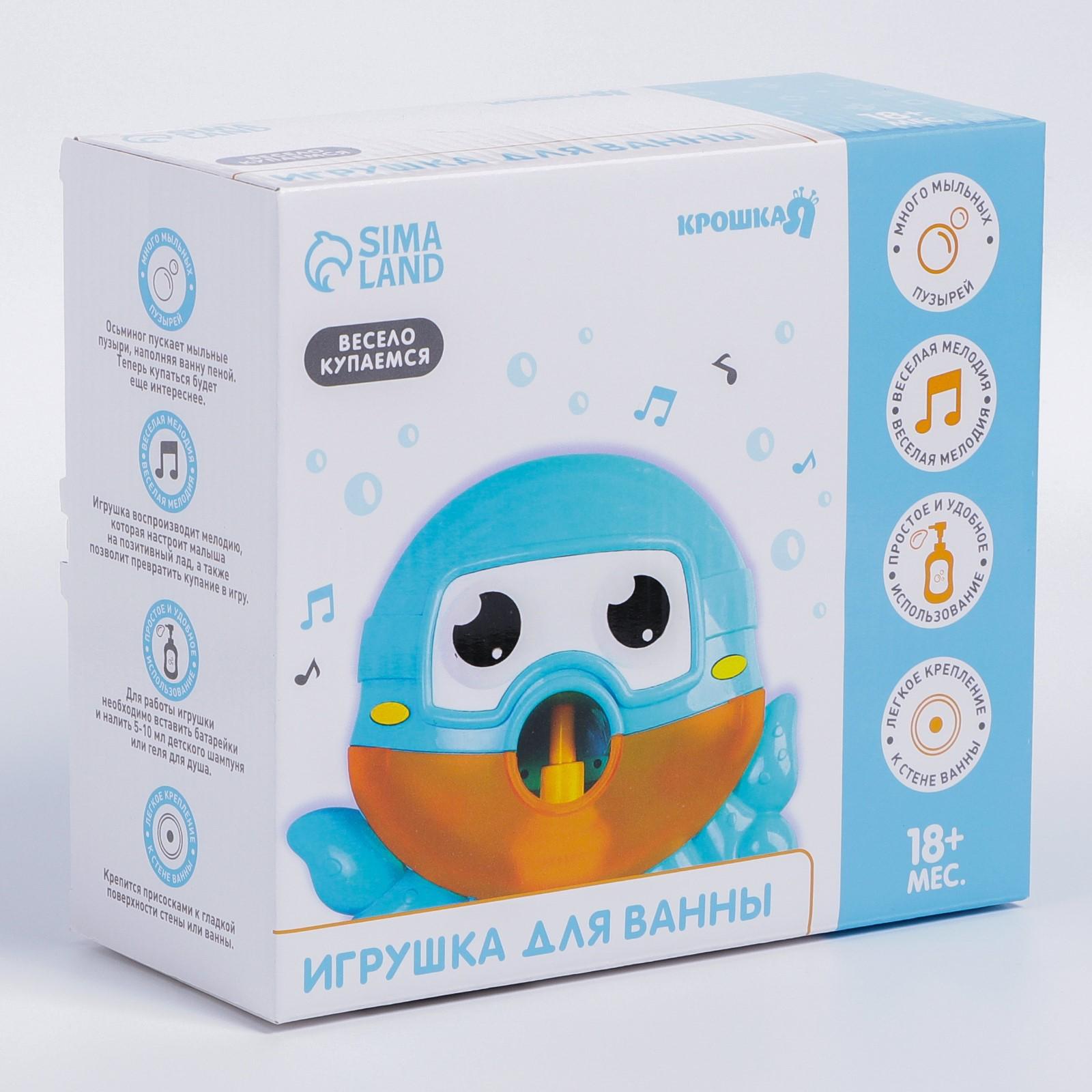 С музыкальным веселым осьминогом купаться одно удовольствие! При наполнении игрушки ароматным шампунем или пеной для ванны, под мелодии она начнет генерировать мыльные пузыри. Игрушка помогает вашему малышу развивать воображение, а также визуальное и слуховое восприятие. Контрастные цвета привлекают внимание и благоприятно влияют на способность фокусировать зрение.