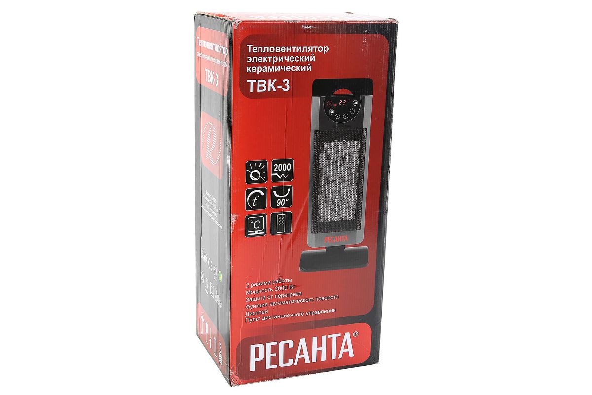 Электрический тепловентилятор Ресанта ТВК-3 используется для дополнительного отопления и вентиляции помещений разных размеров.