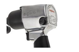 Для ускорения рабочего процесса, и более комфортной работы, гайковерт оснащен рукояткой с мягкой накладкой с ребристой поверхностью, а удачно размещенная клавиша «Пуск», обеспечивает простоту управления данным устройством. Инструмент оборудован 5-супенчатым регулятором усилия, а также имеет дифференцированный крутящий момент. Расход воздуха во время проведения слесарно-монтажных работах составляет 120 л/мин. Модель пневматического гайковерта также оснащена ударным механизмом типа «двойной молот».