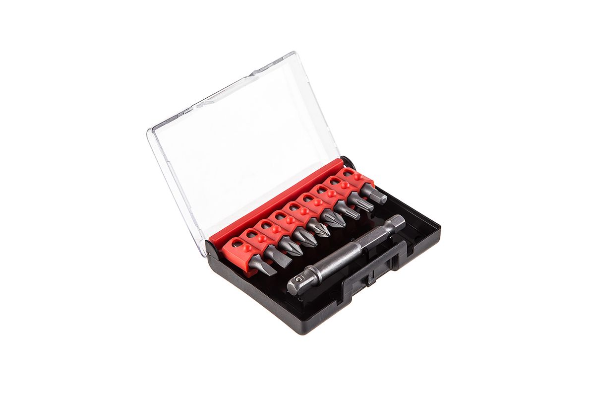 Подойдут биты любого типа и длинны с посадочным хвостовиком HEX 1/4. Для увеличения усилия установите головки в квадрат сбоку ручки.