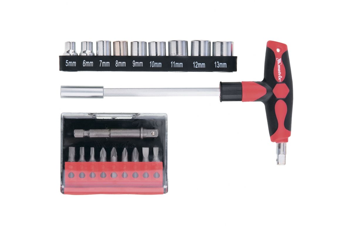 Отвертка MATRIX 11574 с т-образной эргономичной ручкой набором бит и насадок 20шт crv