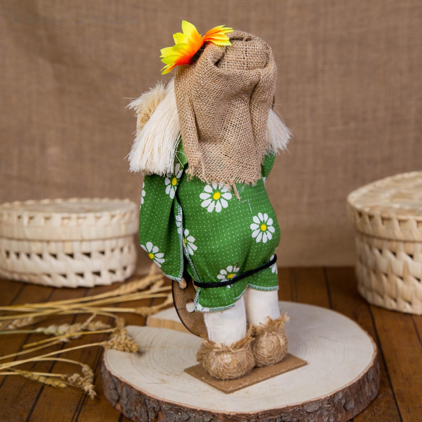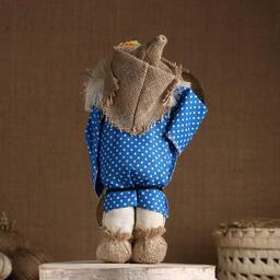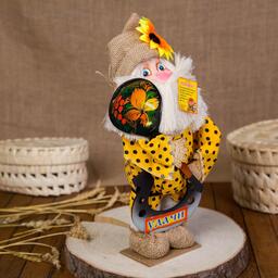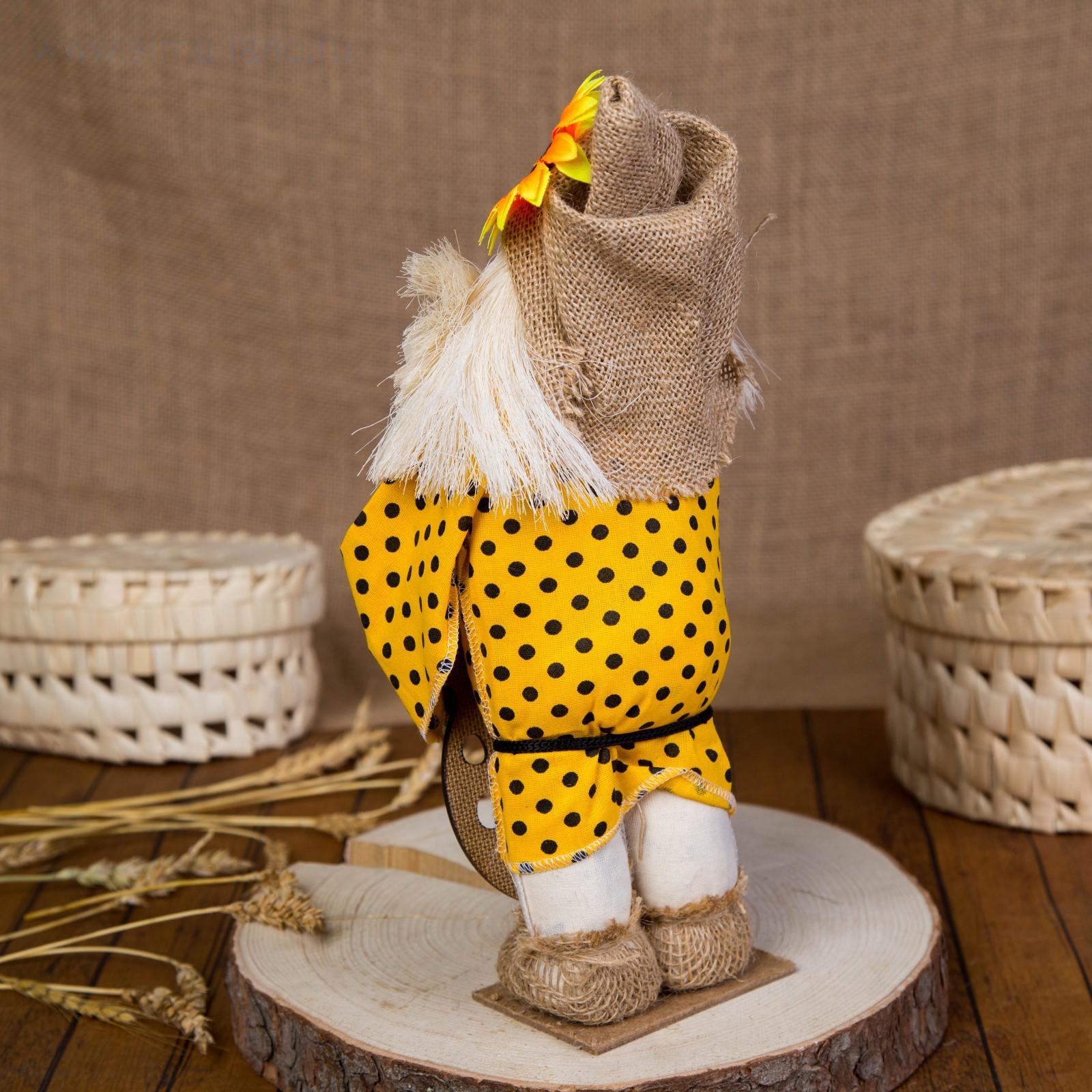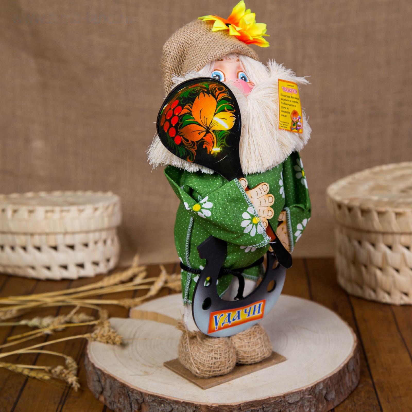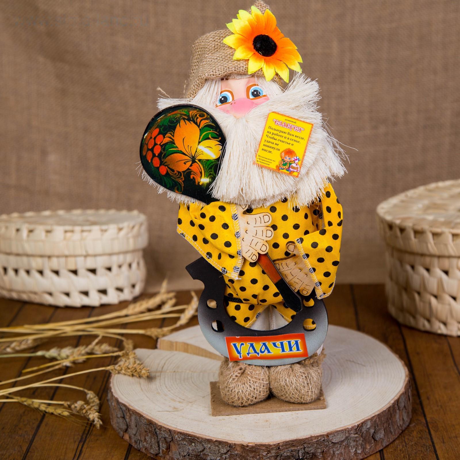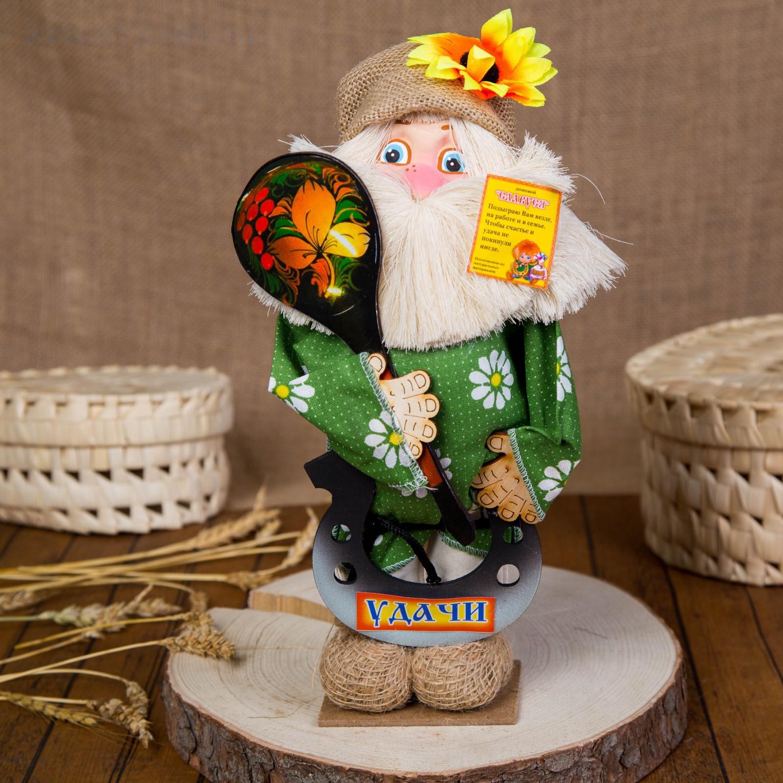 Оберег-домовой "Славуся в льняном колпаке, с ложкой и подковой", микс