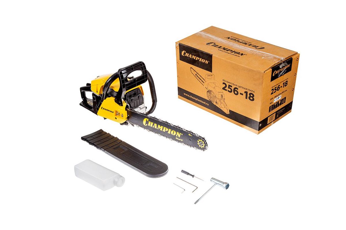 Бензопила Champion 256-18 подходит для заготовки дров, валки деревьев, спиливания веток и сучков. Шина 45 см, в цепи 72 звена. Мощность мотора 3,4 л.с.