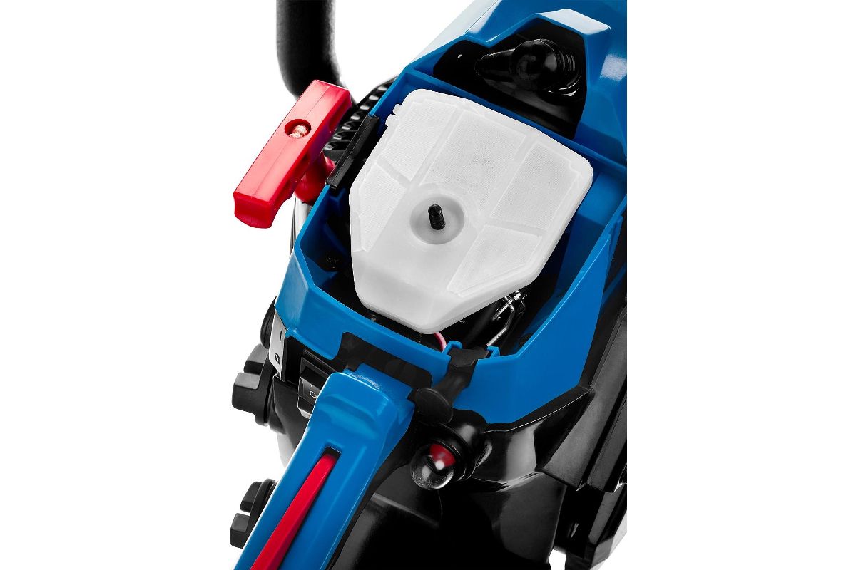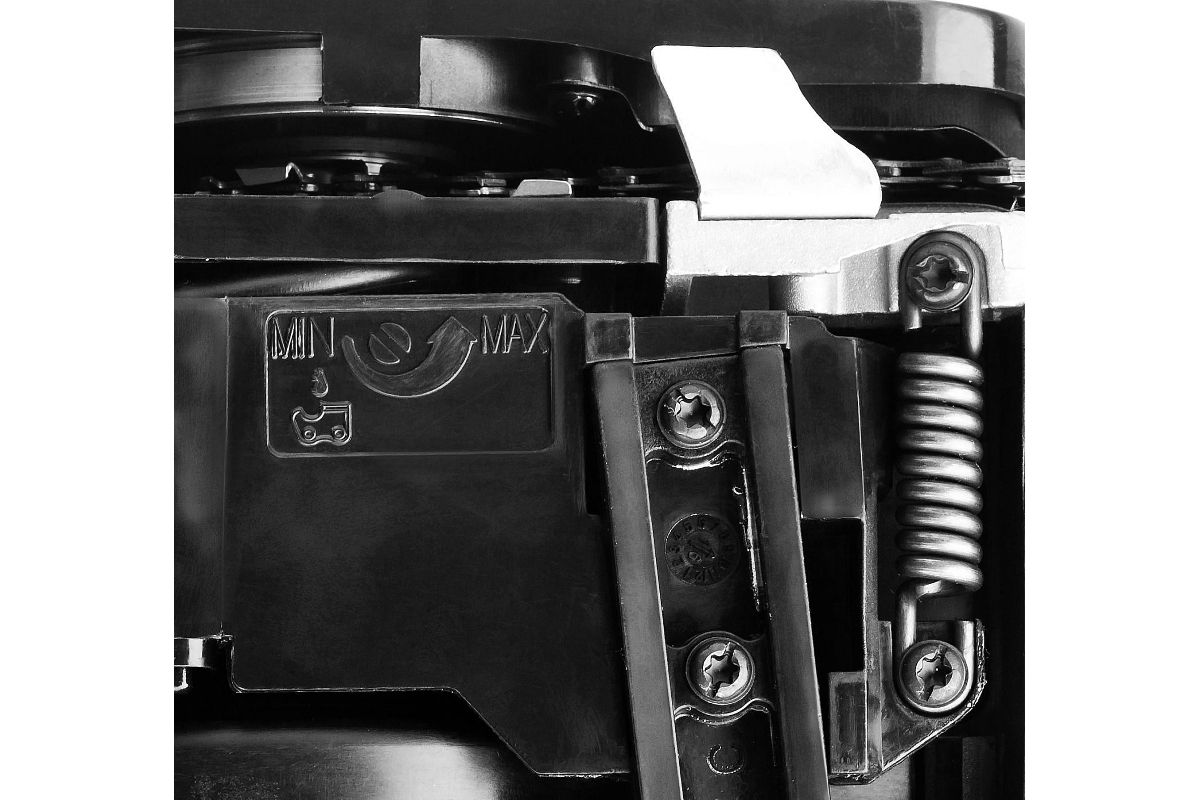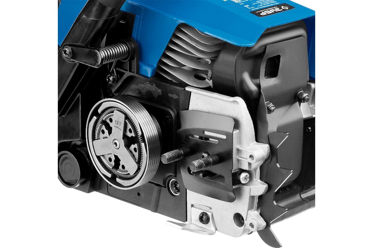 Тормоз цепи срабатывает при отскоке. Защищает от травм и не даёт потерять контроль над инструментом.