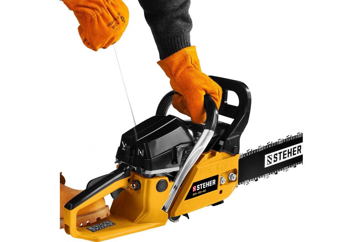 • Рукоятка бензопилы STEHER BS-45-40 имеет удобную для захвата форму