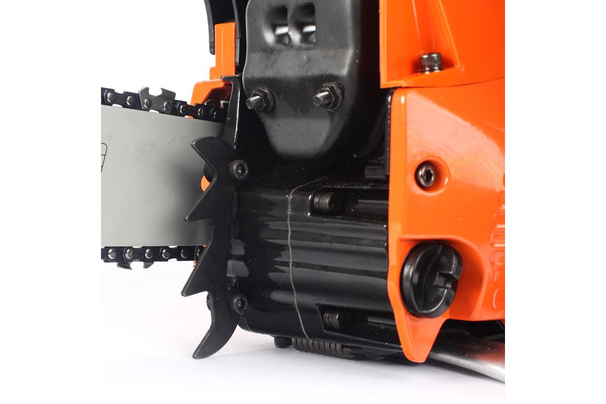 раб. объем: 38сс; мощность: 2,0 л.с; шина: 16''; цепь: 3/8'' 0,050''/1,3mm; кол-во звеньев: 57; металлические крышки стартера и сцепления; виброизоляция; регулируемый масляный насос; боковое натяжение цепи; в комплекте поставки емкость для смешивания топливной смеси; воронка с топливным фильтром; напильник; комплект инструмента для сборки и обслуживания