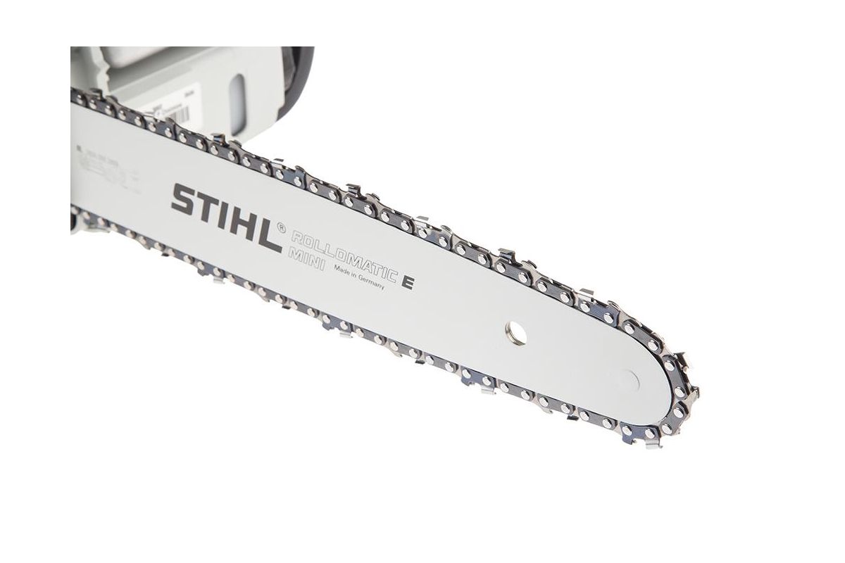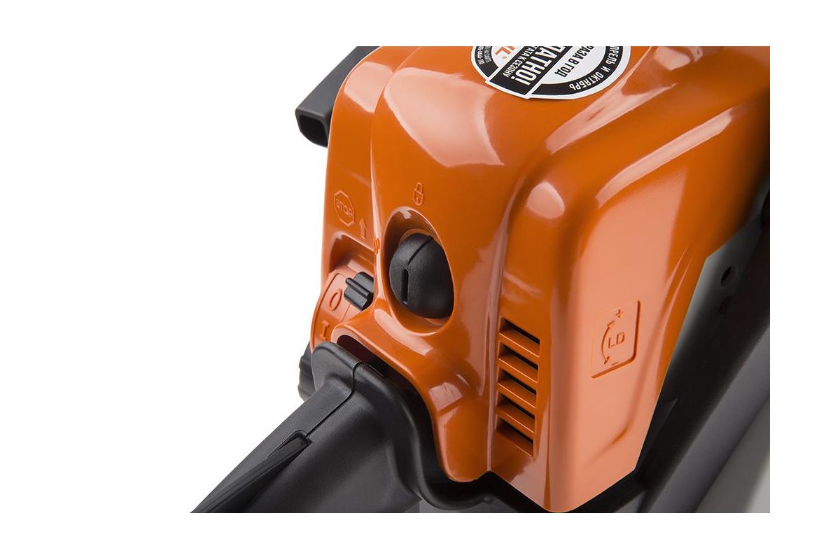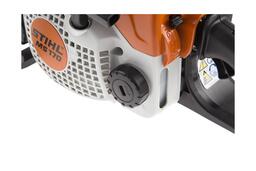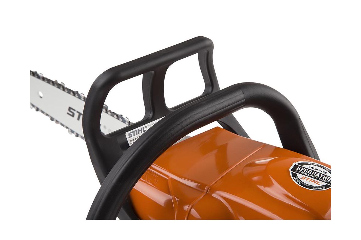 Безопасная работа гарантирована благодаря наличию цепного тормоза, который мгновенно останавливает цепь, если рука пользователя касается защитного щитка.