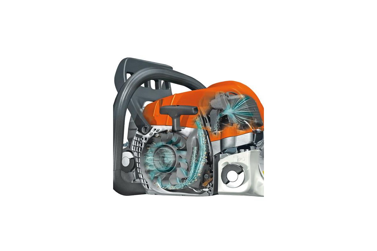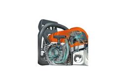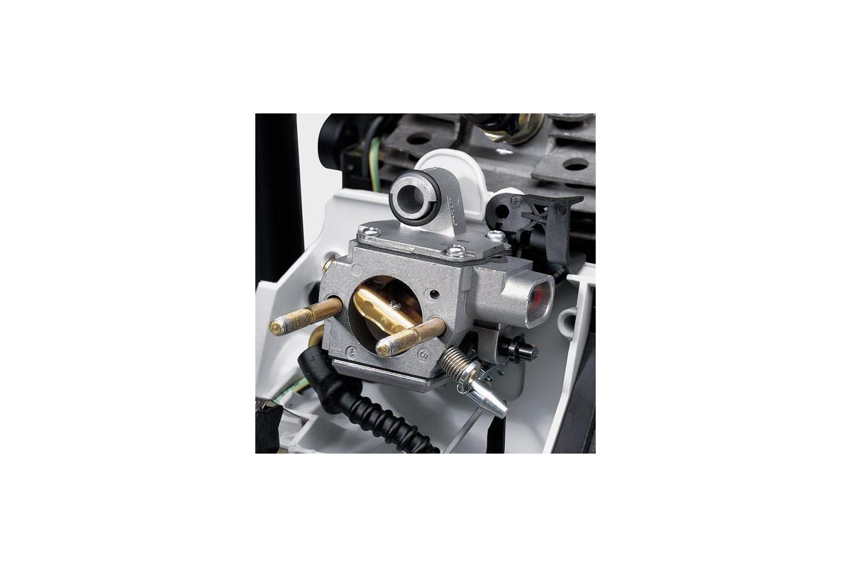 Подогреваемый карбюратор позволяет работать с пилой зимой. Облегчает запуск и предотвращает обледенение двигателя.