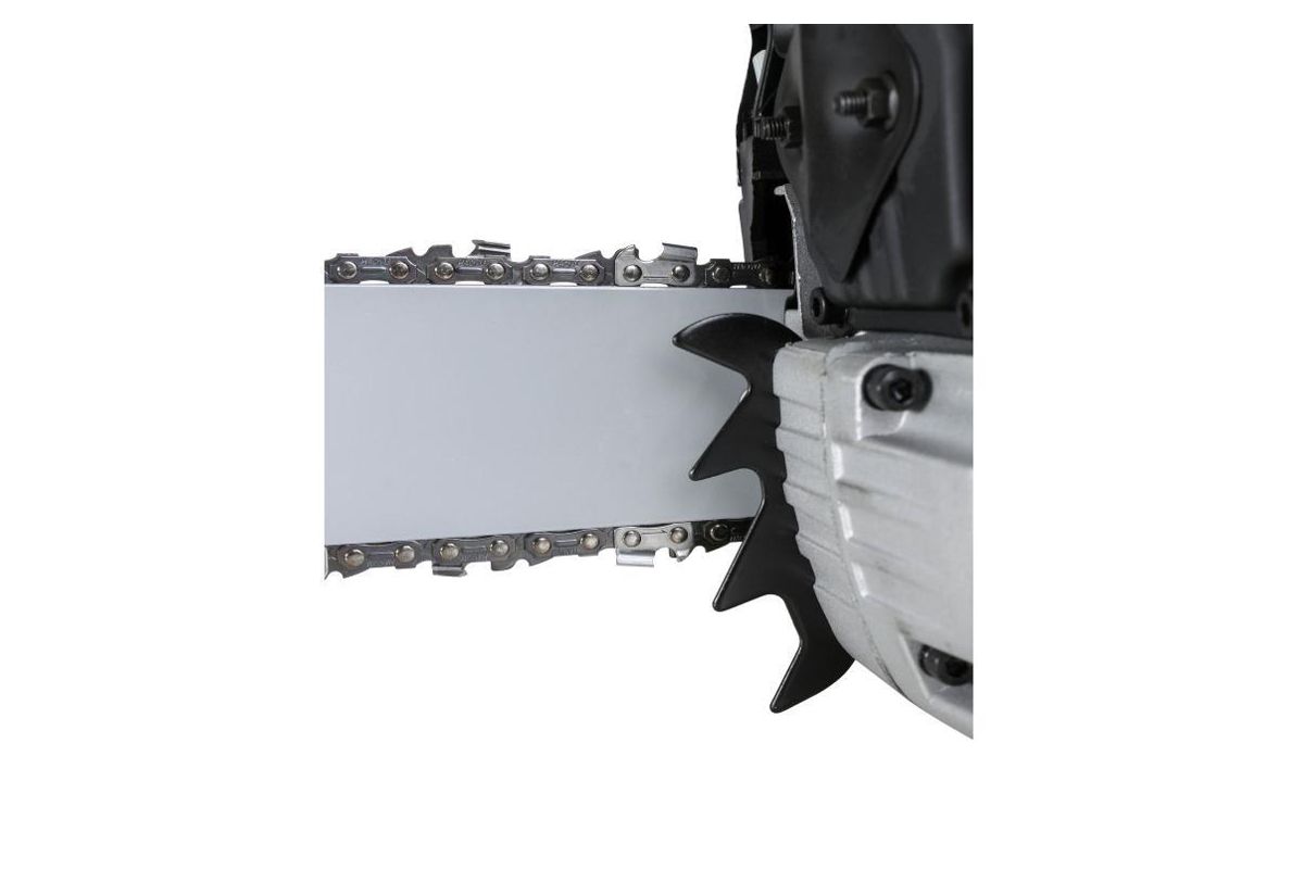 Бензопила – незаменимый помощник в распиловки древесины на дачном или загородном участке. Имеет бак объемом 550 мл, который позволит работать длительное без дозаправки. Тормоз пильной цепи останавливает её вращение в случае отскока или при нажатии на защитный щиток – это снижает вероятность травмы во время работы.