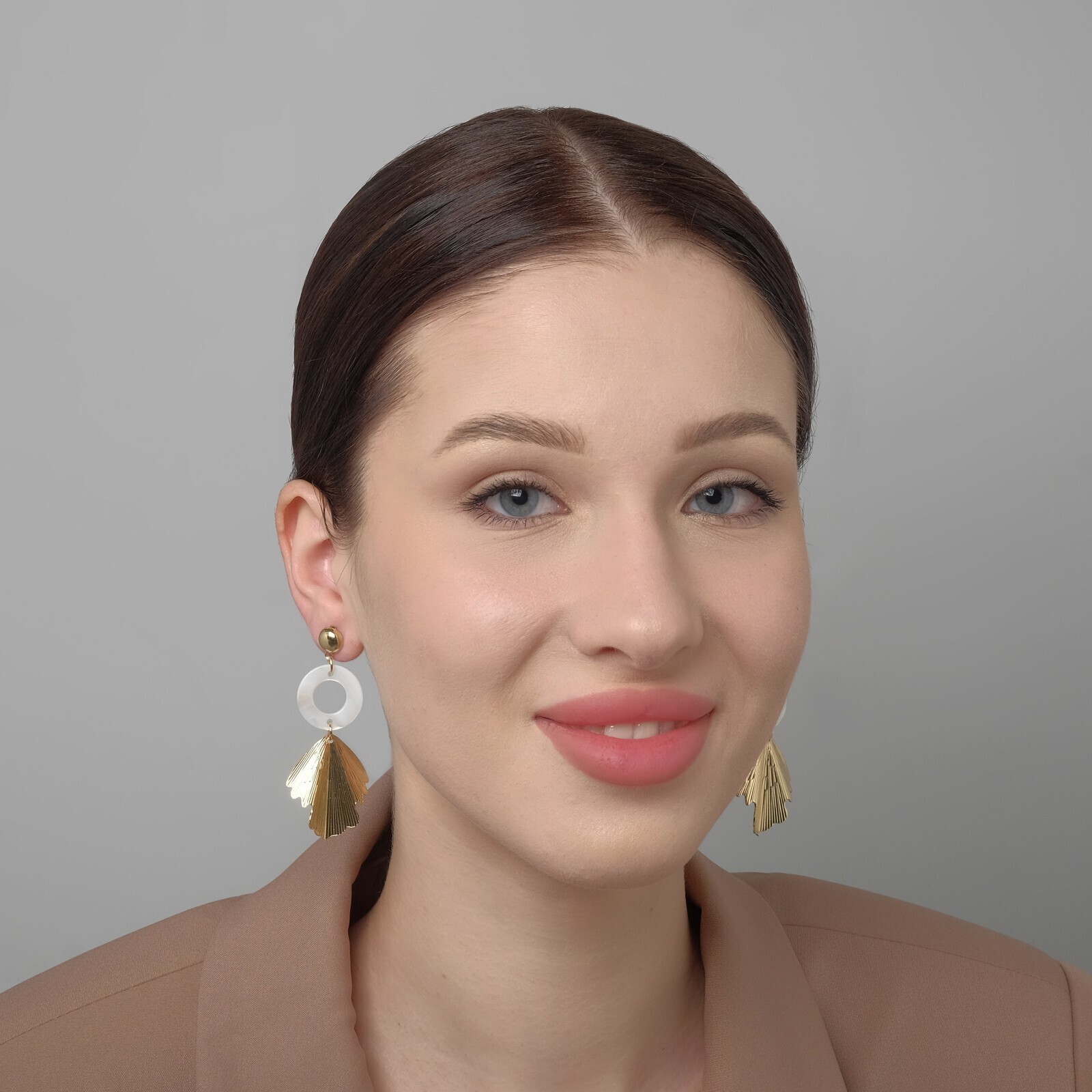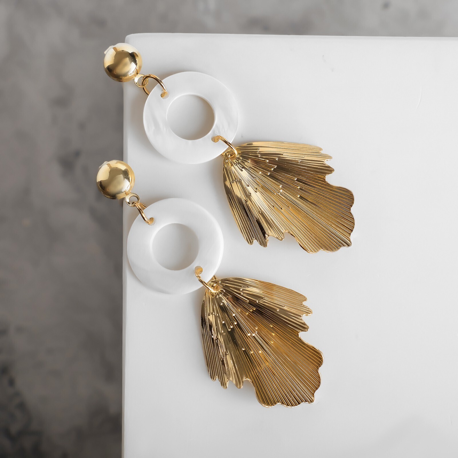 Серьги с перламутром "Сиа" листочек, цвет белый в золоте