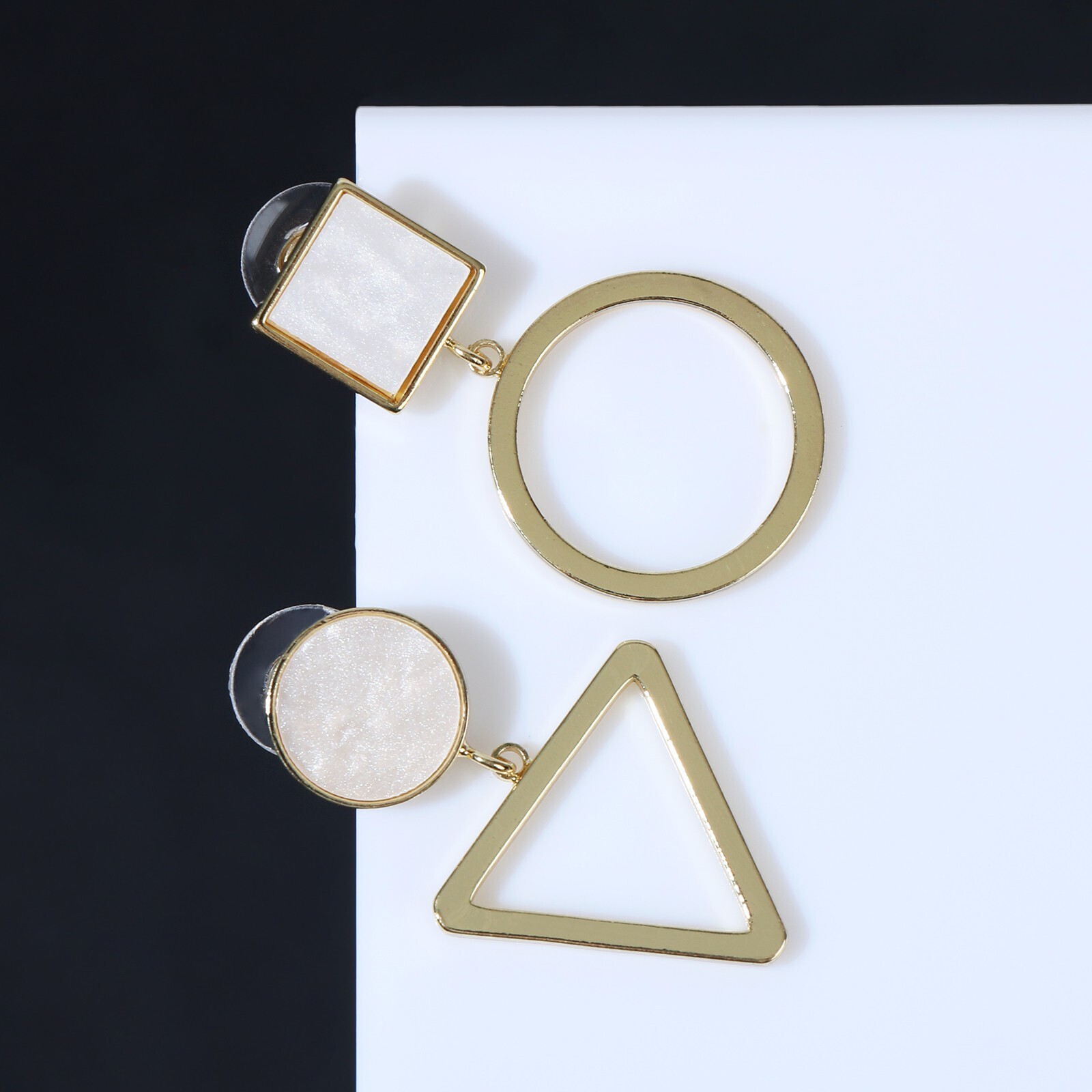 Серьги с перламутром "Волшебство" геометрия, цвет белый в золоте