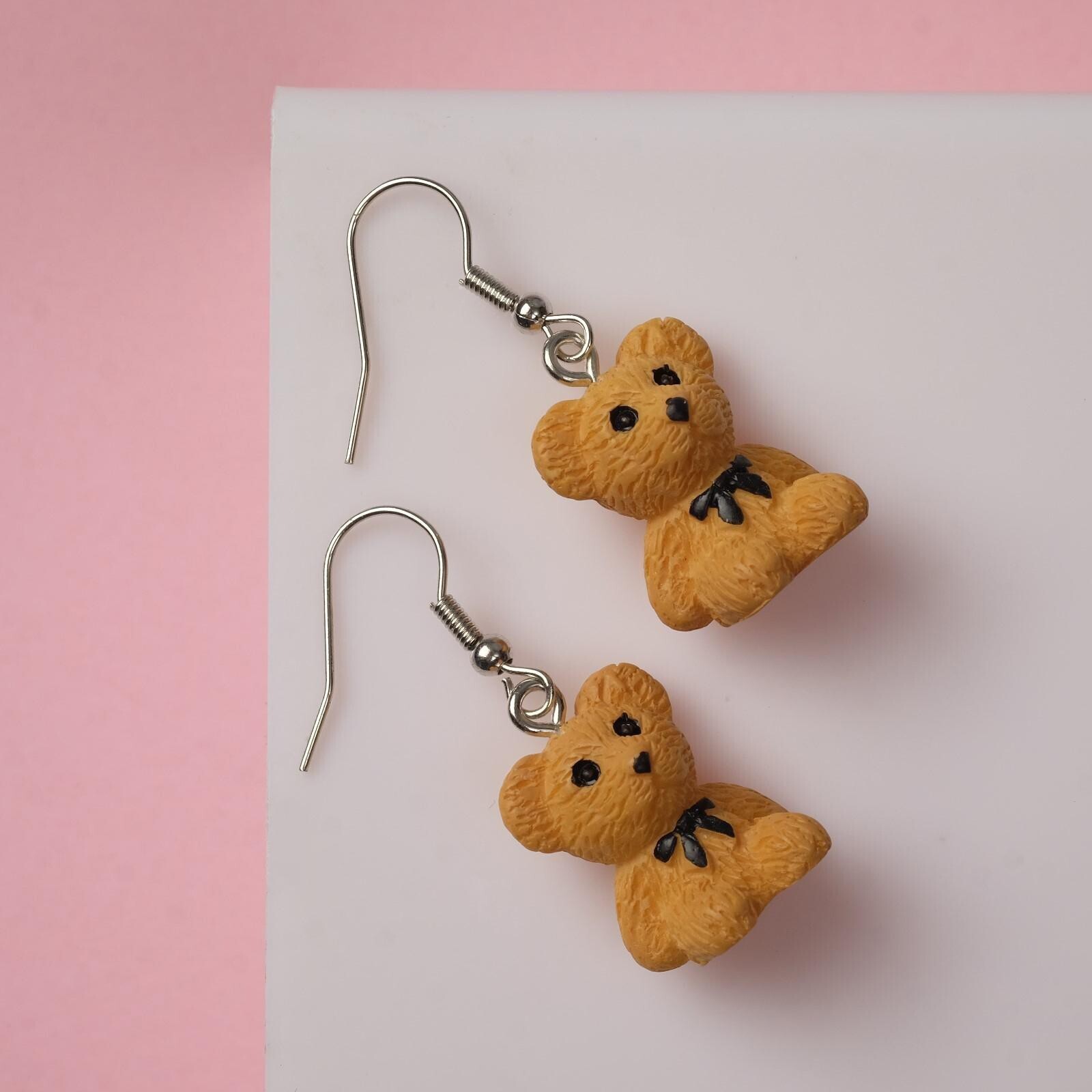 Серьги ассорти "Вкусняшки" печенье мишка, цвет коричнево-чёрный в серебре
