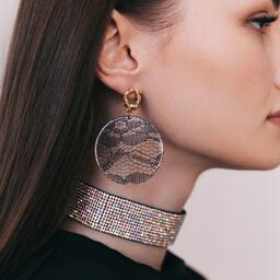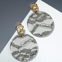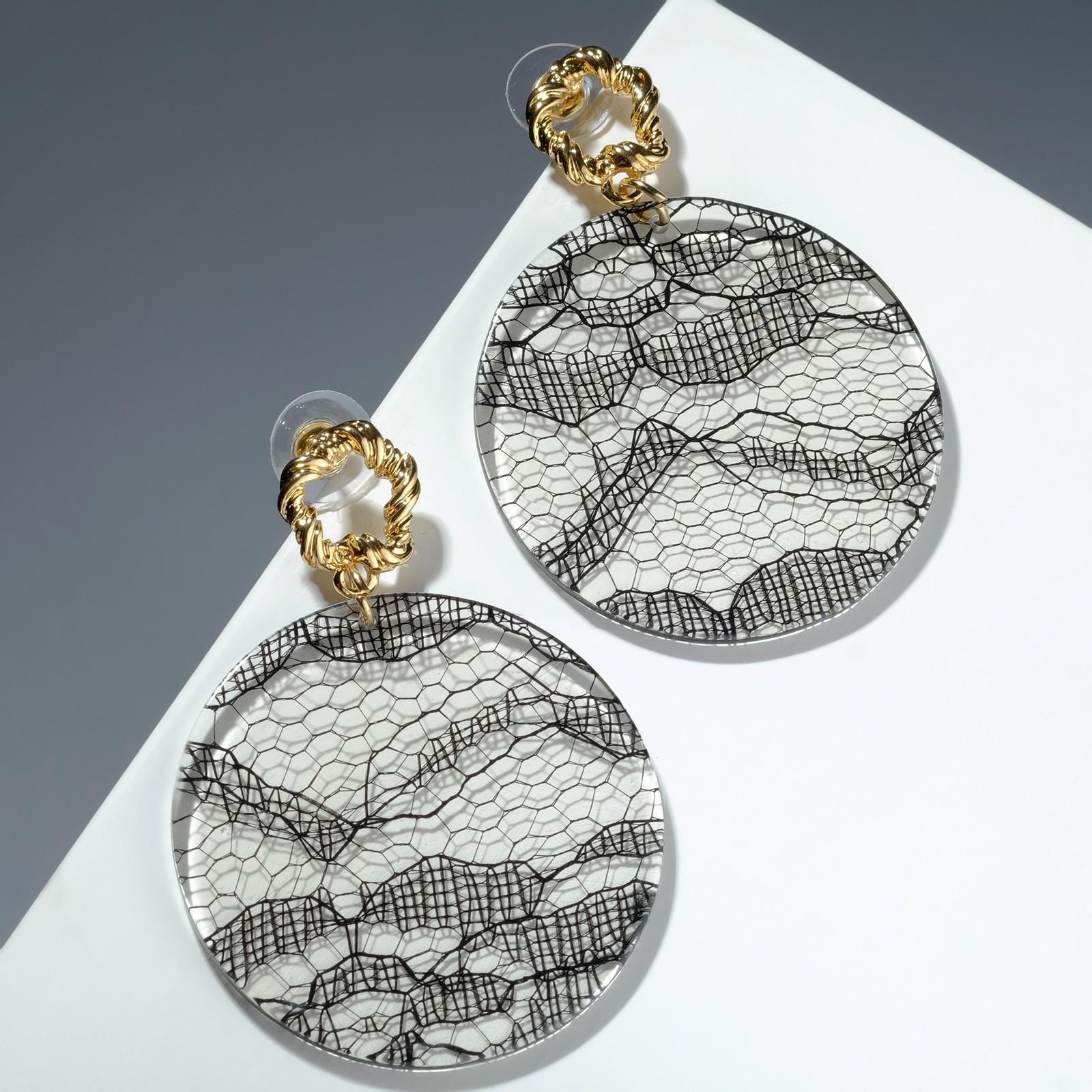 Серьги ассорти "Артхаус" мятое кольцо и круг, цвет чёрно-белый в золоте