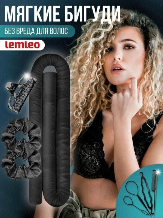 Бигуди мягкие для завивки волос кудрей локонов объема атласные гибкие VS32 черный ободок керлик