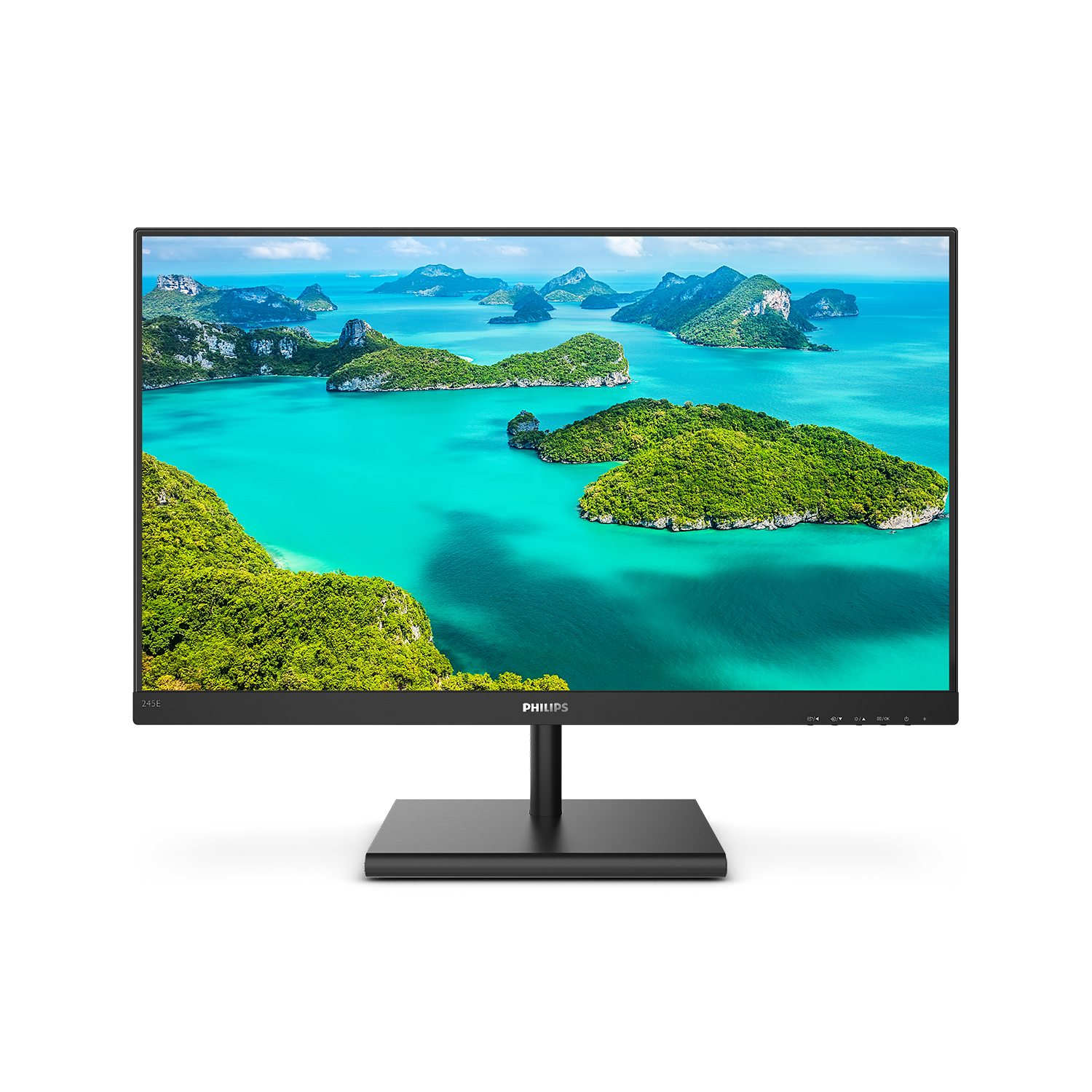 Philips E Line 245E1S/00. Диагональ экрана: 60,5 cm (23.8"), Разрешение экрана: 2560 x 1440 пикселей, Тип HD: 2K Ultra HD, Технолигия дисплея: ЖК, Время отклика: 4 ms, Собственное форматное соотношение: 16:9, Угол обзора по горизонтали: 178°, Угол обзора по вертикали: 178°. крепление VESA. Цвет товара: Черный