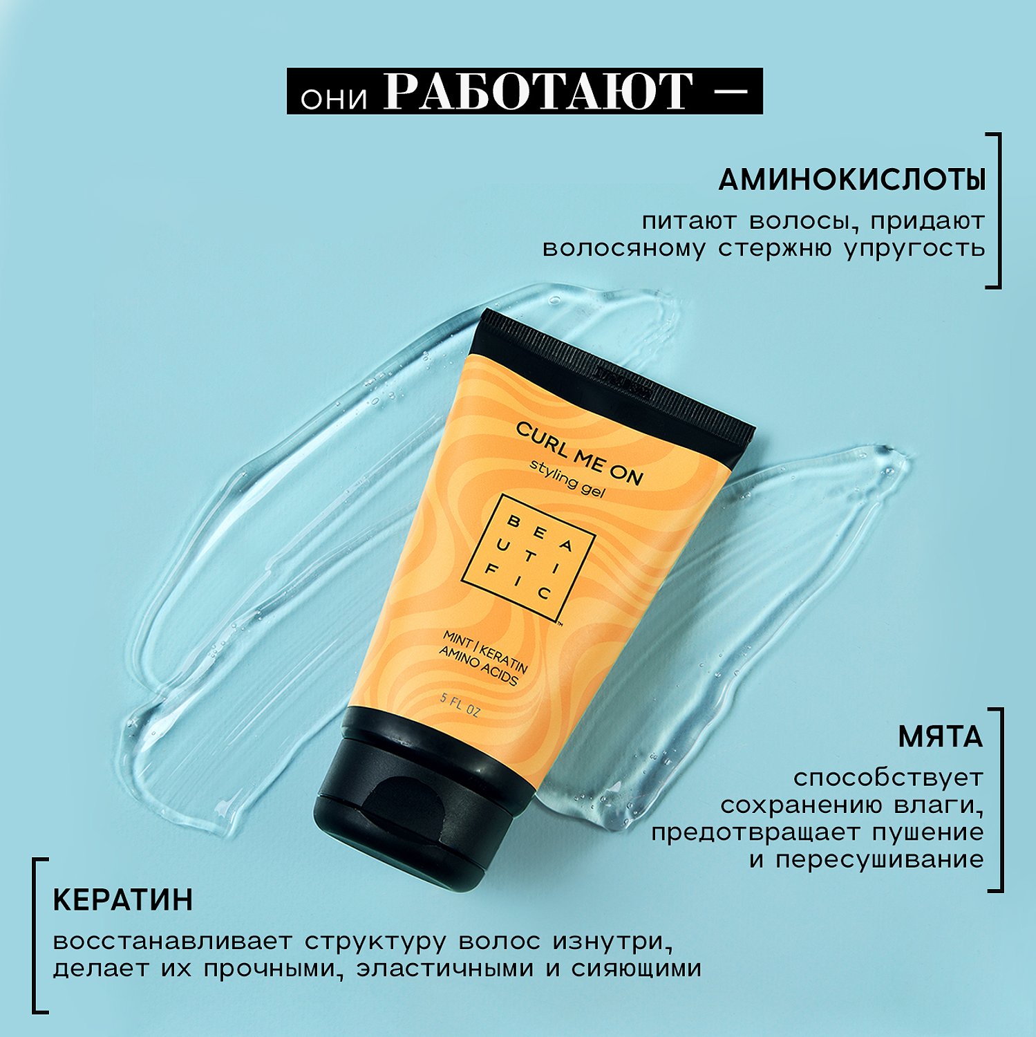 Гель BEAUTIFIC Curl Me On для укладки кудрявых волос и вьющихся с мятой кератином и аминокислотами 150мл BTF0503