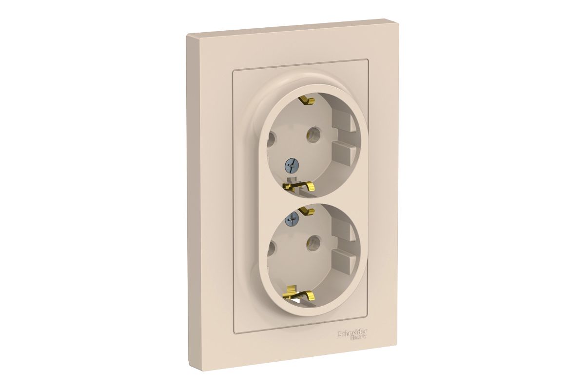 Розетка SCHNEIDER ELECTRIC ATN000224 2-м atlas design с заземл. 16а в сборе беж.