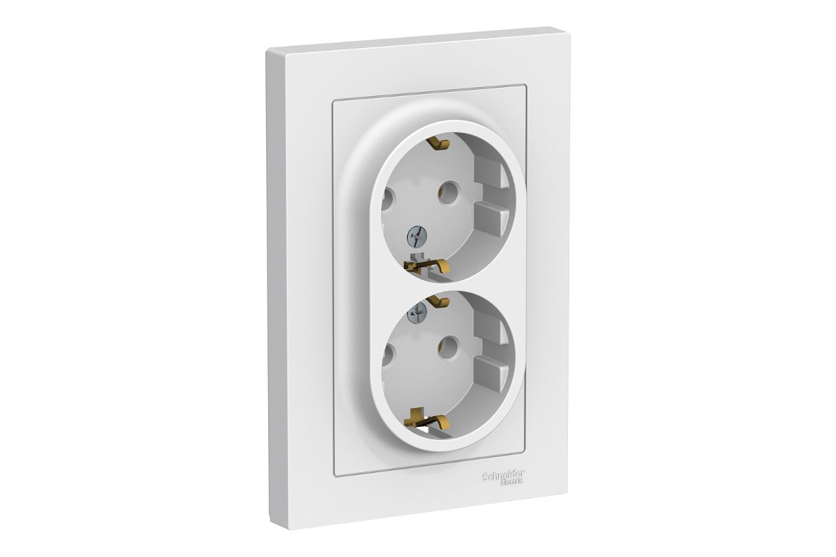 Розетка SCHNEIDER ELECTRIC ATN000124 2-м atlas design с заземл. 16а в сборе бел.