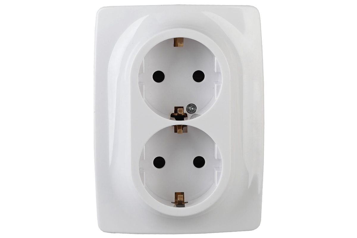 Розетка ЭРА 12-2106-01 2X2P+E Schuko, 16A-250В, IP20, Эра12, белый