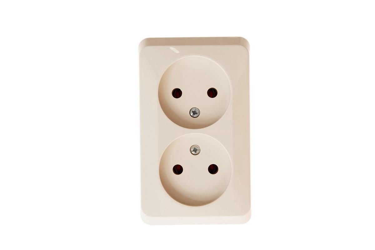 Розетка PA16-005k Этюд 2-местная, открытой проводки, 16А, без заземления, крем Schneider Electric