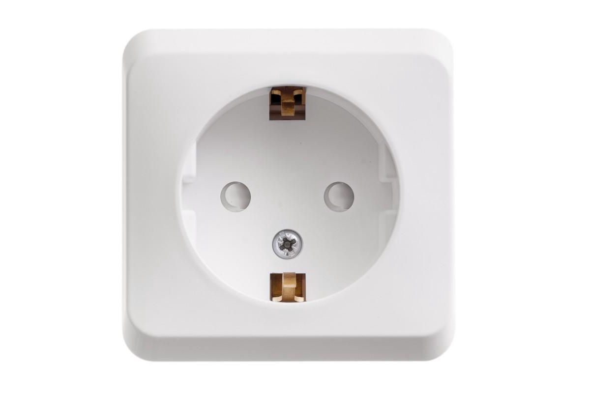 Розетка PA16-004b Этюд 1-местная, открытой проводки, 16А, с заземлением, защитные шторки, белая