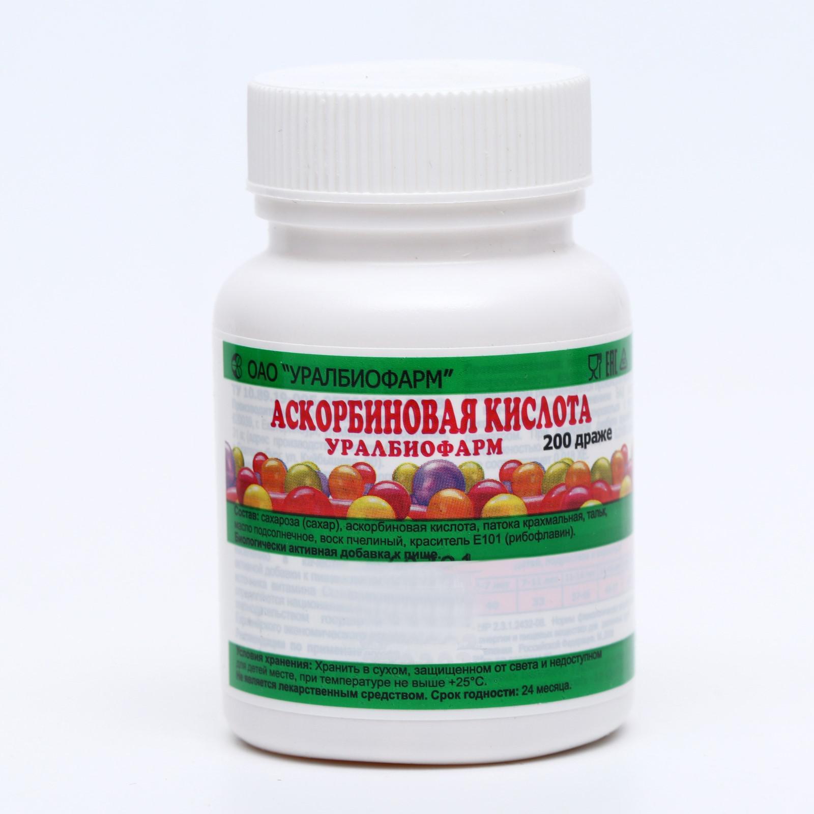 Аскорбиновая кислота (витамин C), повышение иммунитета, 200 драже по 20 мг