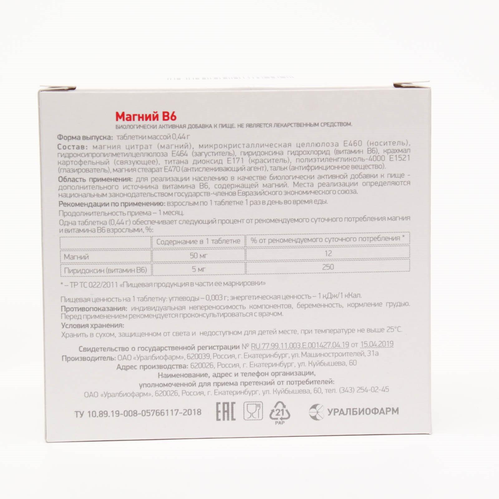 Назначение: витамин Магний Б6 в качестве биологически активной добавки к пище - дополнительного источника витамина В6, содержащей магний. Для улучшения психо-эмоционального состояния при стрессе.