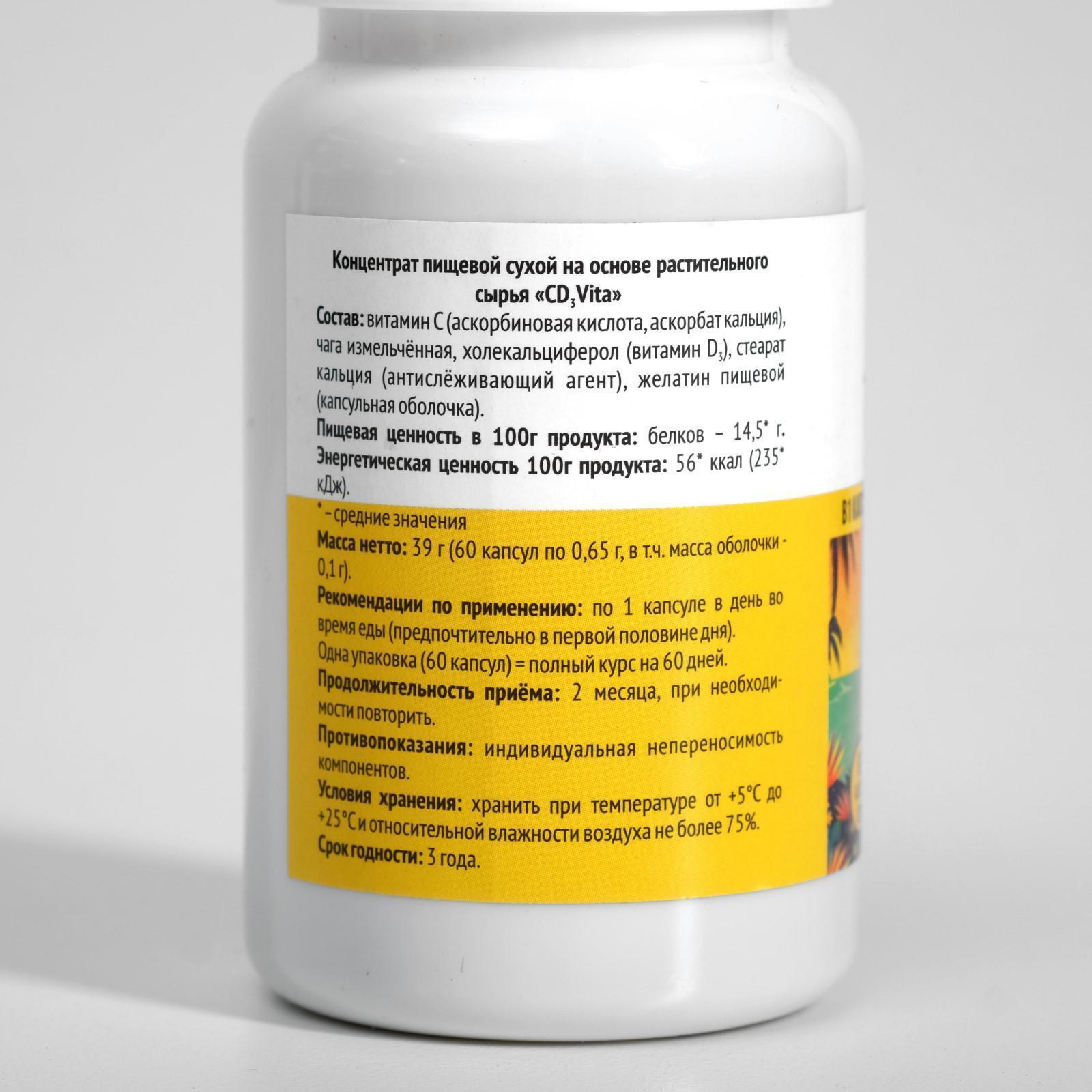 Витаминный комплекс D3 + витамин C + Чага, 60 капсул по 0.6 г