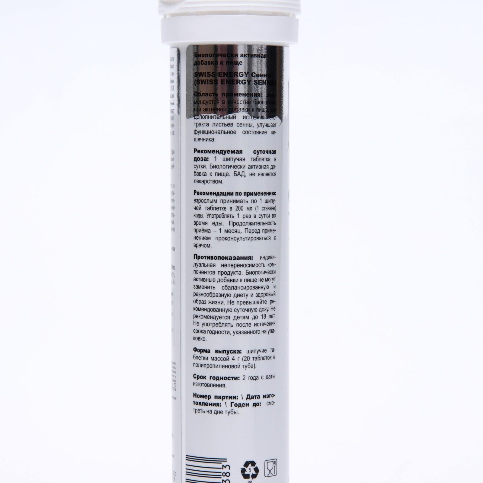 Витамины Swiss Energy «Сенна», слабительное действие, 20 таблеток