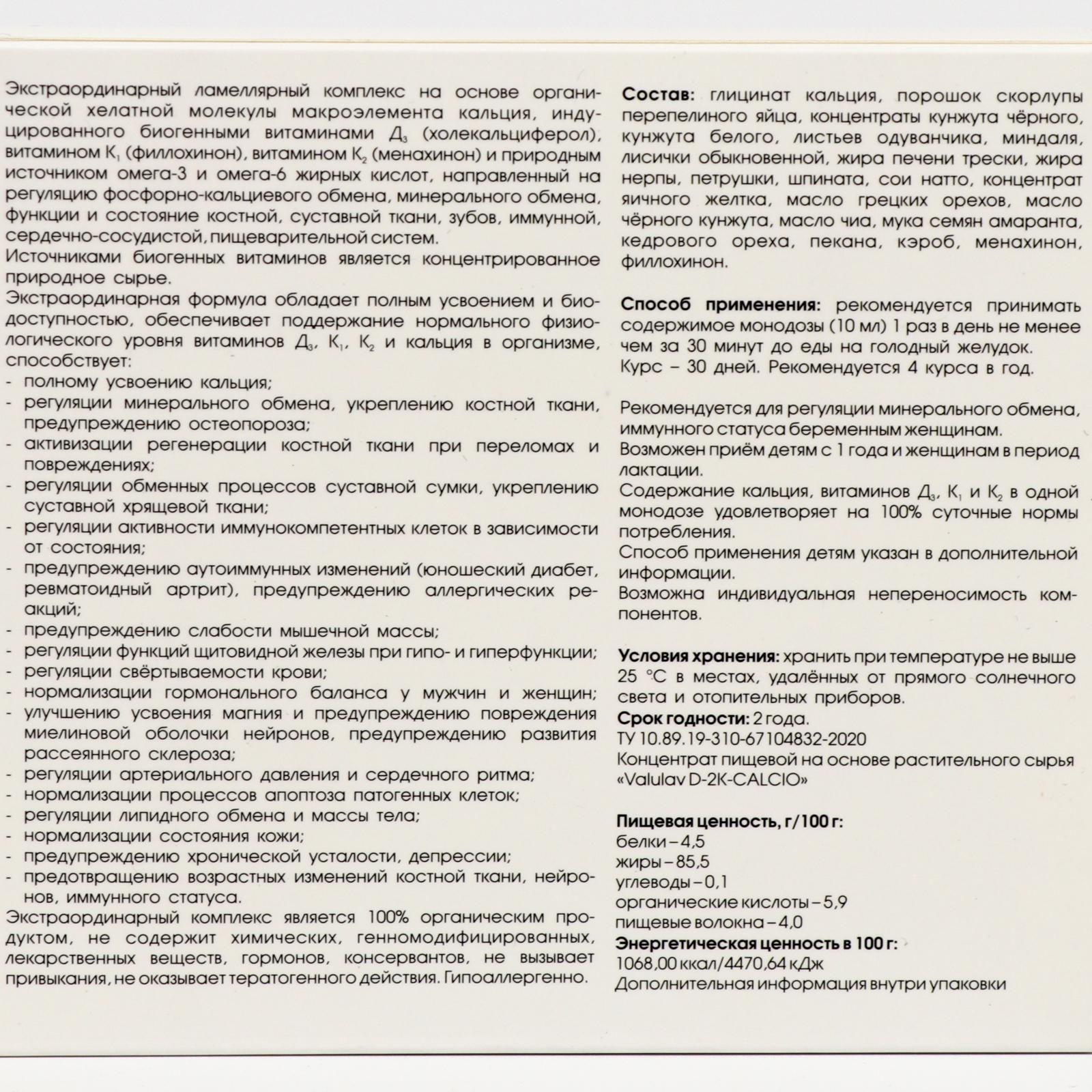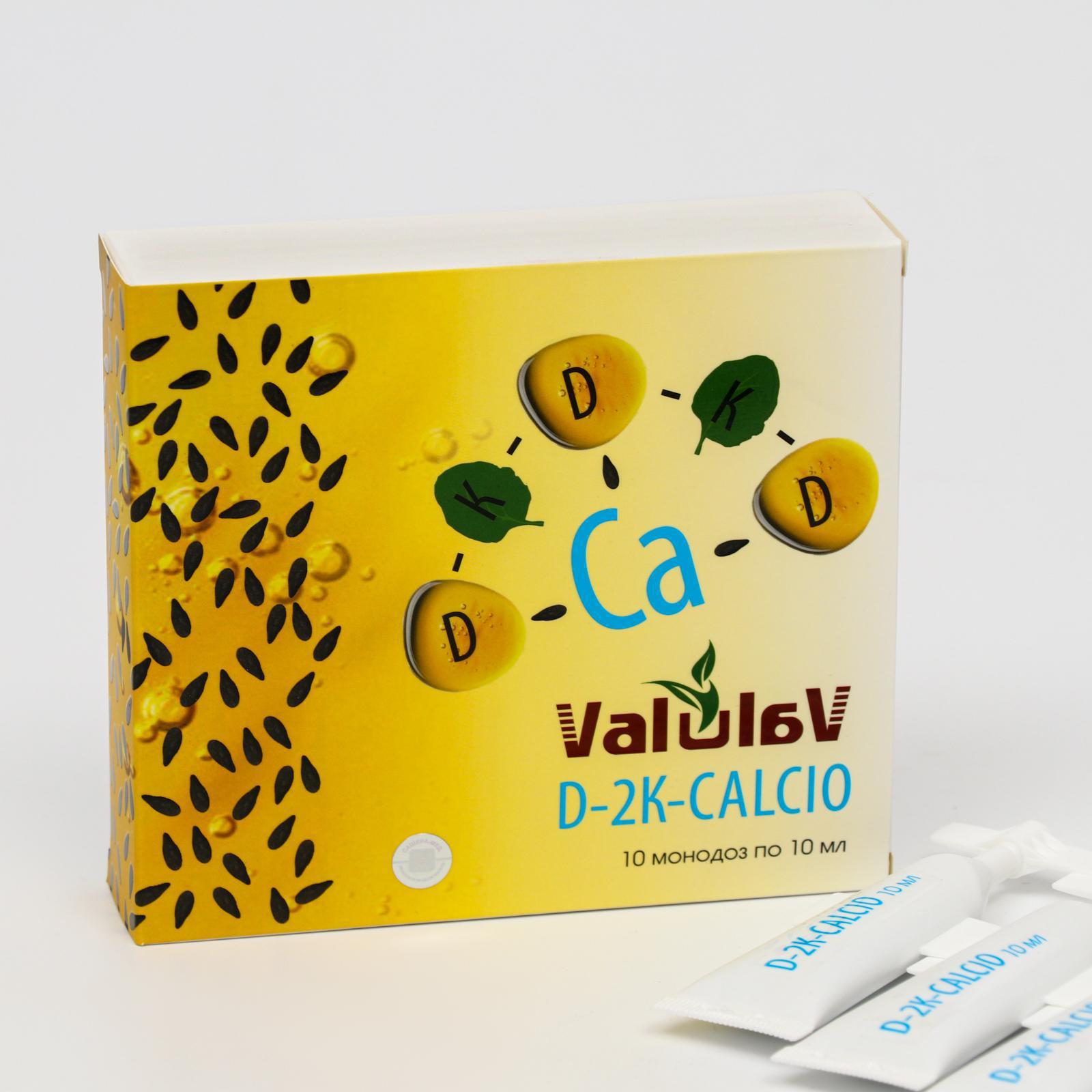 Монодозы ValuLav D-2K-CALCIO, натуральные витамины D3, K1, K3 и кальций, укрепление иммунитета, костной ткани, сердца и сосудов, 10 шт. по 10 мл