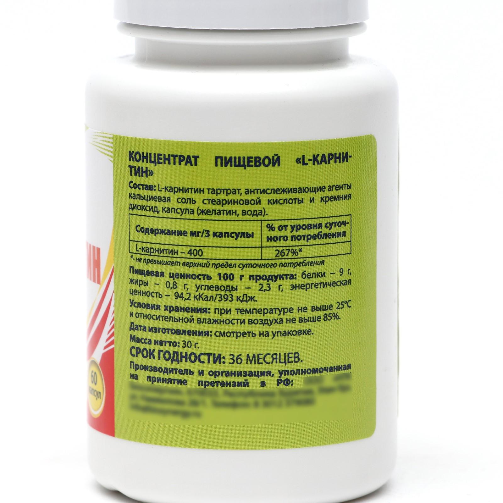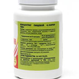 Состав: l- карнитин тартрат, антислеживающие агенты, кальциевая соль стеариновой кислоты и кремния диоксид, капсула (желатин, вода).