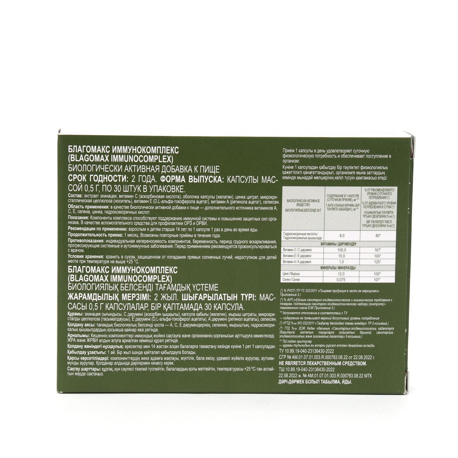 БЛАГОМАКС ИММУНОКОМПЛЕКС (BLAGOMAX IMMUNOCOMPLEX) - дополнительный источник витаминов А, С, Е, селена, цинка, гидроксикоричных кислот.
