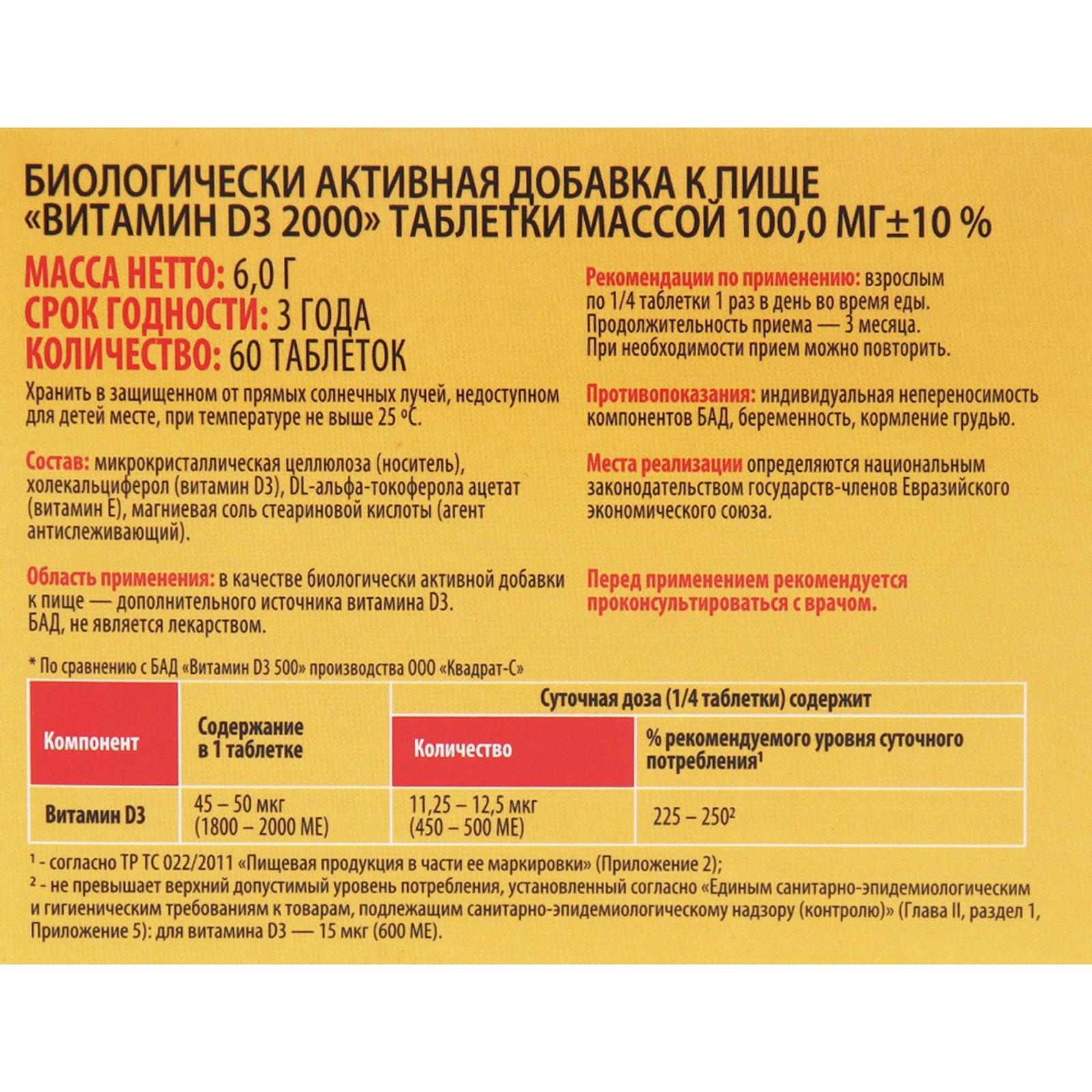 Витамин Д3 (D3) 2000 МЕ ВИТАМИР таб. №60