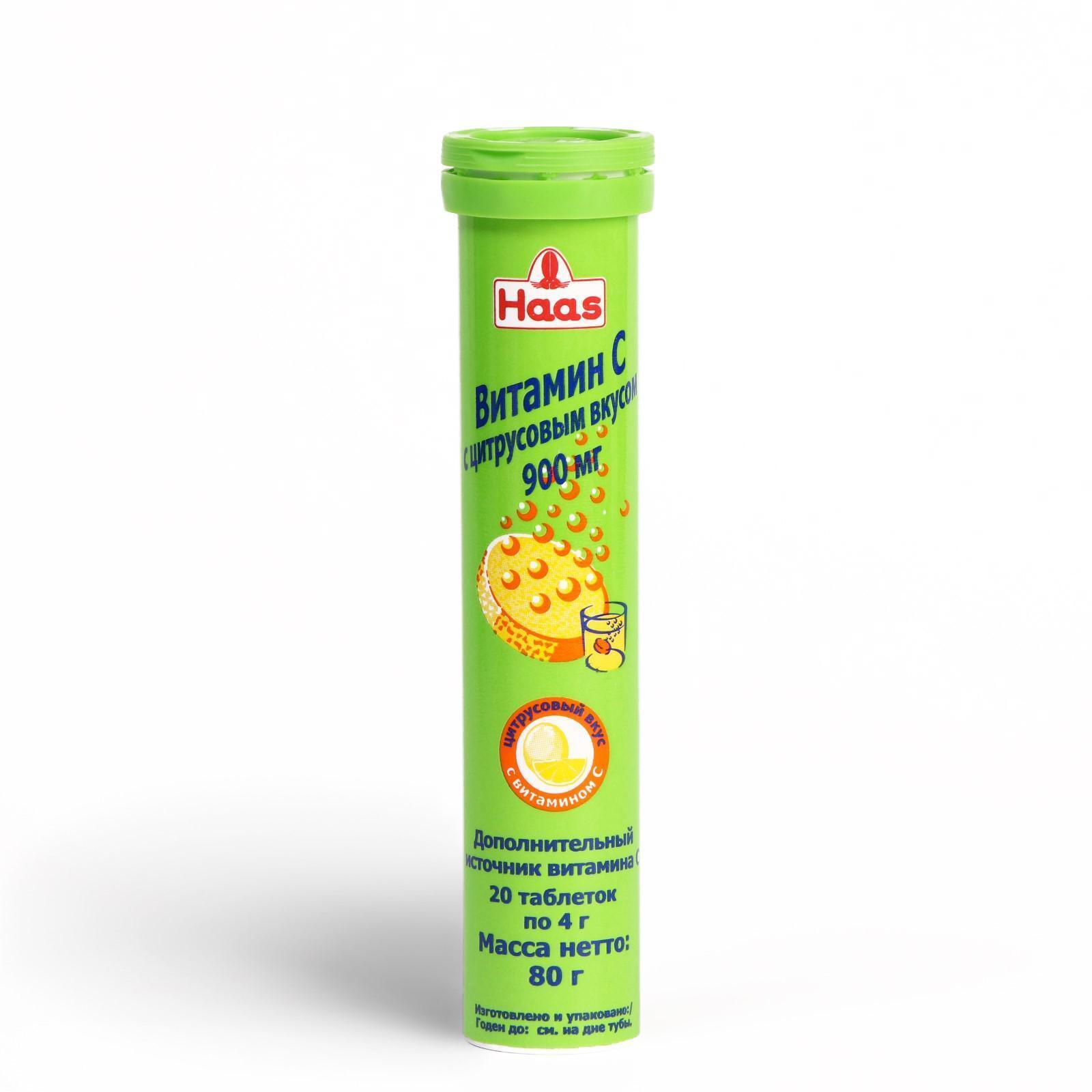 Витамин C 900 мг Haas с цитрусовым вкусом, 20 шипучих таблеток по 4 г