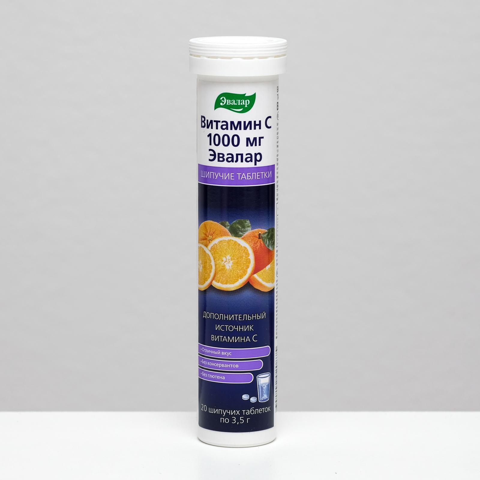 Витамин C 1000 мг, против вирусов и простуды, 20 шипучих таблеток по 3,5 г